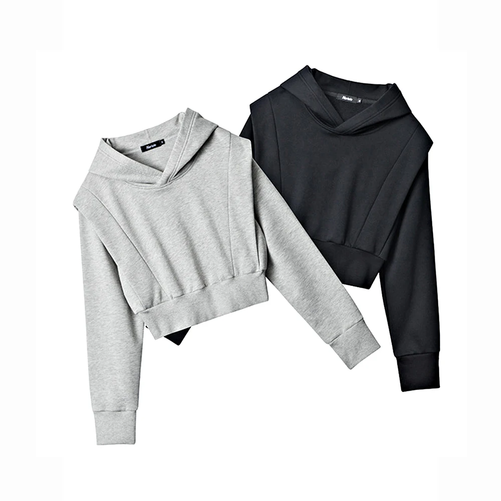 Ladies Quality Fashion Brand Hoodie Short Sweater Women's Hooded Navel-exposed Solid Color Pullover Top