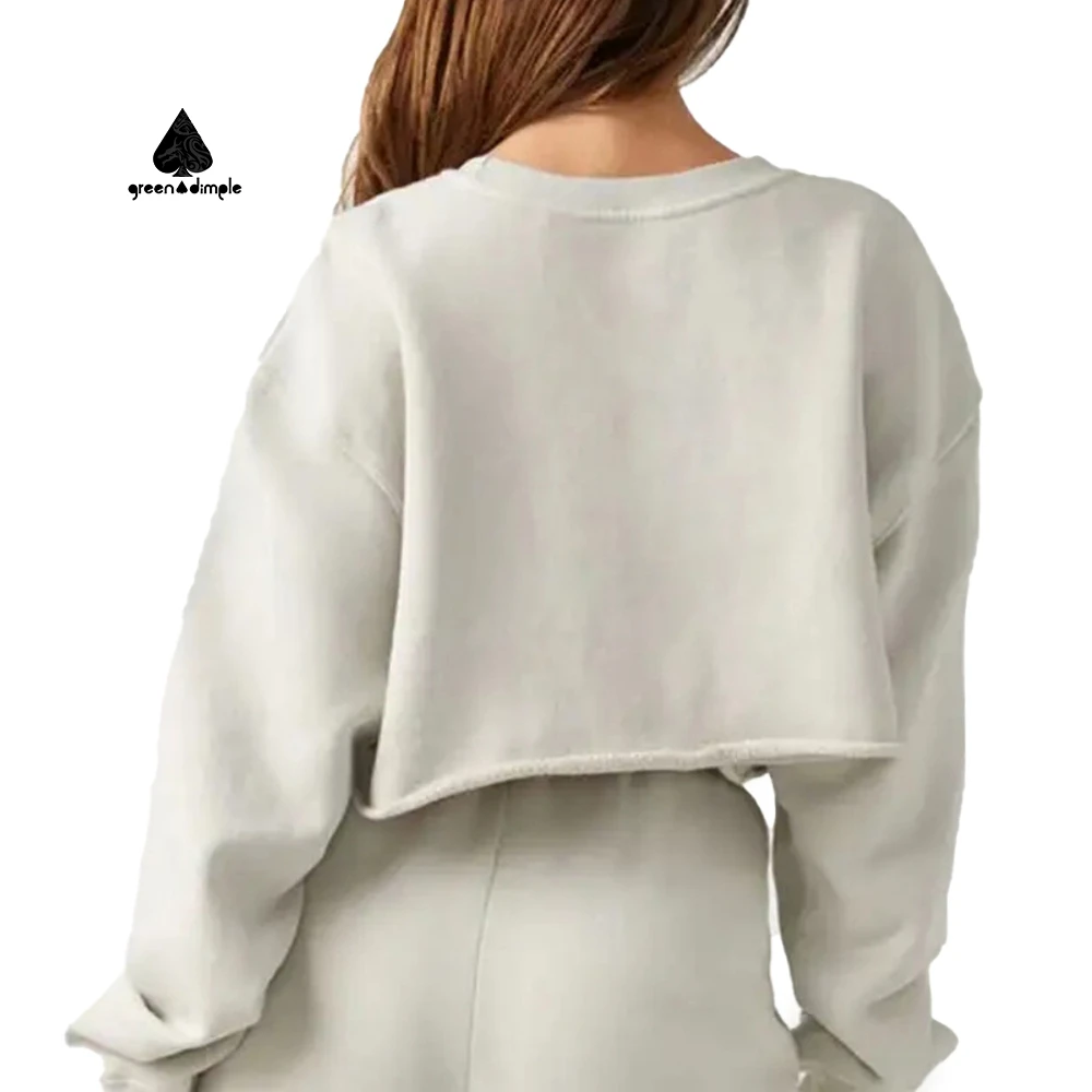 New Design Crew Neck Custom Autumn Gym Fitness Sets Women Plain Cotton Loose Long Sleeve Pullover Crop Top Sweatshirt