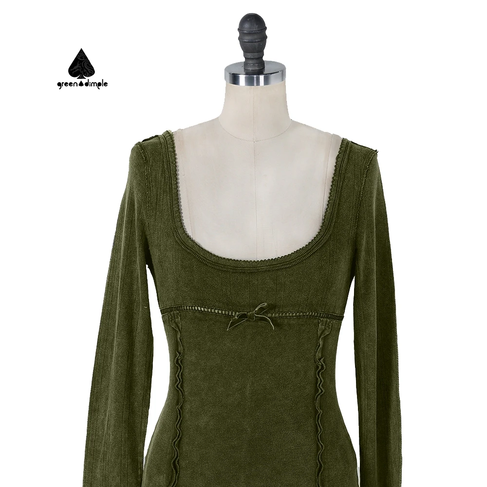 ZYHT 21541 Wholesale Crew Neck High Waist Casual Dresses Elegant Lace Velvet Mermaid Hem Ruched Long Sleeve Dresses for Women
