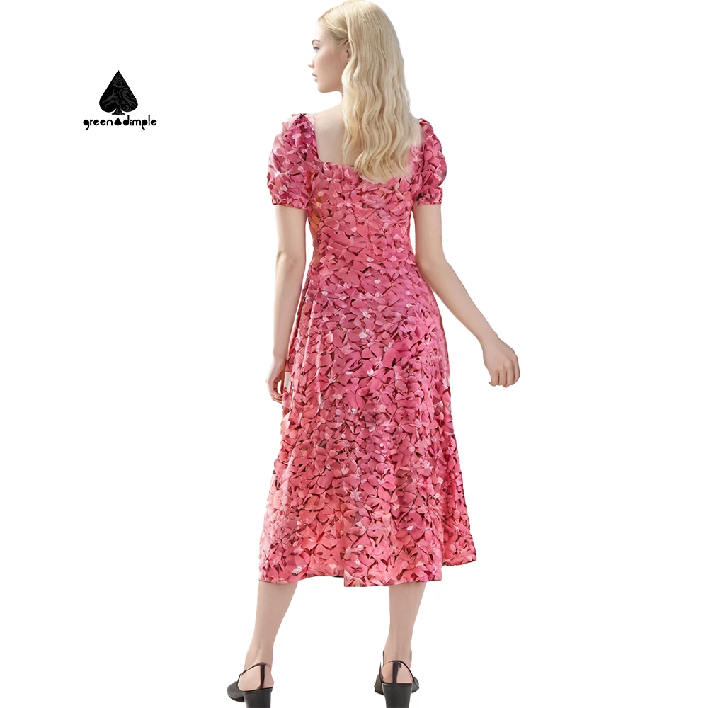 Customize Printing Floral Swing Casual Dress with Belt Zippers Ruffles Sweet Midi Length Woven Digital Printed for Summer