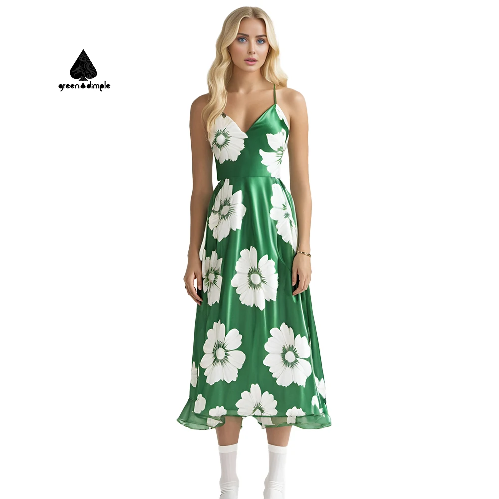Ladies Quality Mulberry Silk Floral Printed Summer Elegant Casual Party Dress Mother Daughter Satin Trend Nice Dresses