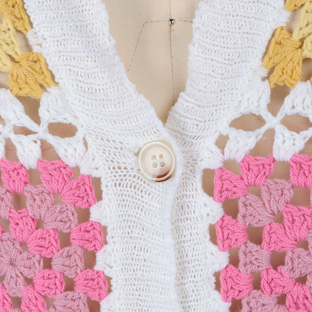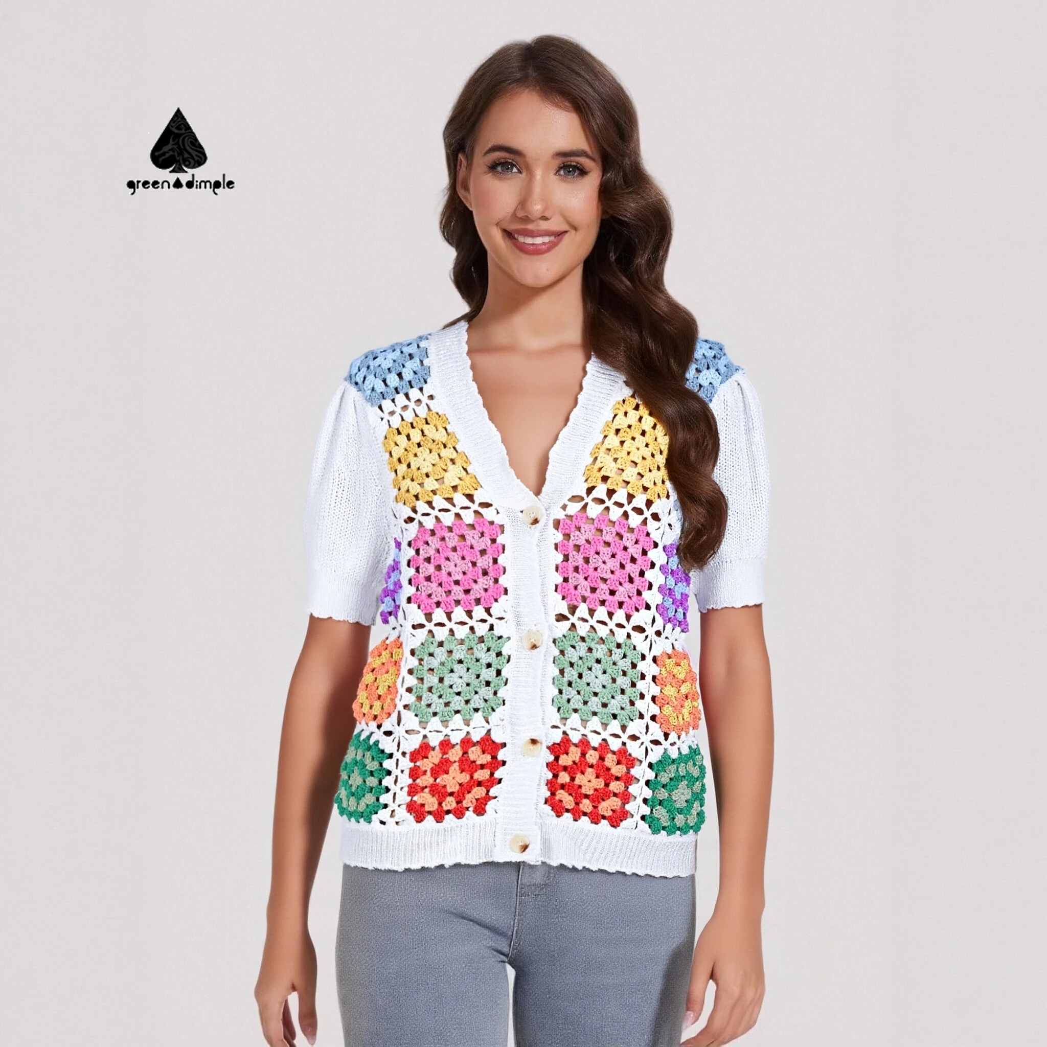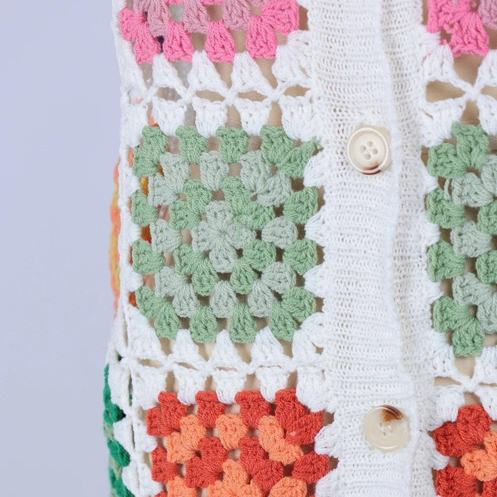 Custom Knit Women's Spring Autumn Cardigan Vintage Crochet Sweater Square Plaid Pattern Casual Style Knit Breathable Sweater