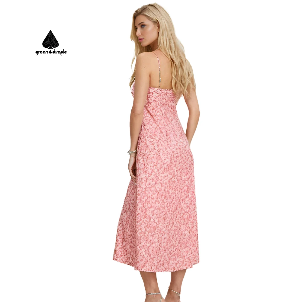 Women Floral Spaghetti Strap Midi Dress Ruched Bust Fitted Silhouette Lightweight Woven Fresh Style Printed Daily Casual Dress