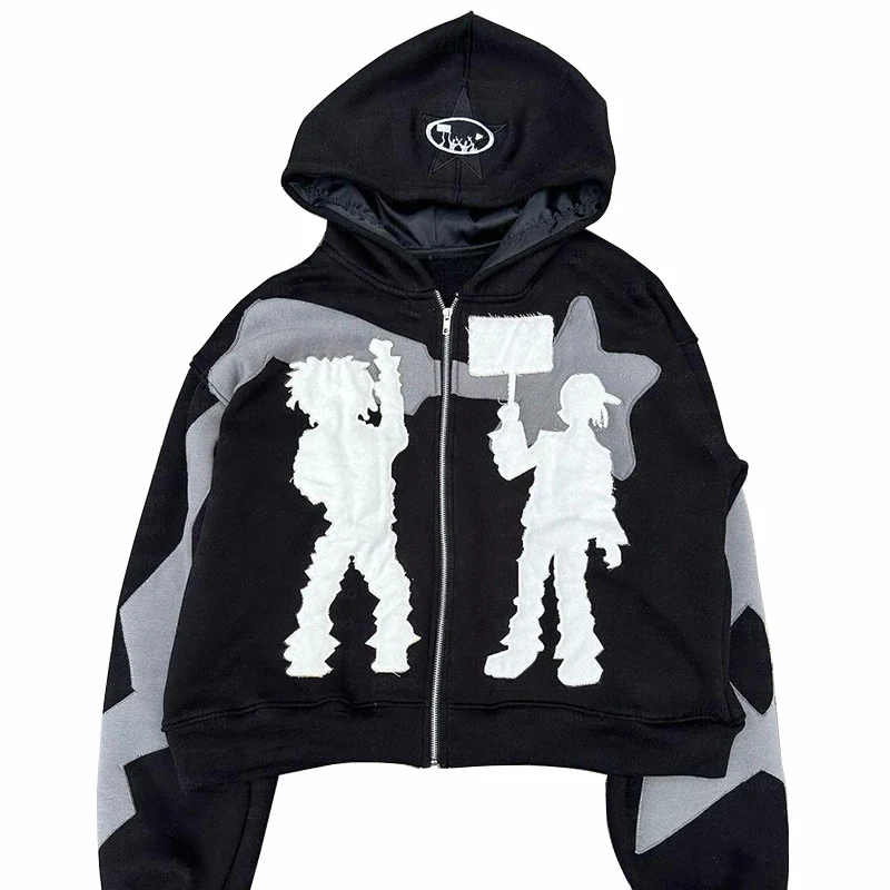 Y2K High Street Style Hooded Cardigan American Fashion Brand with Front Logo Hip-hop Style Letter Patch Hoodie for Winter