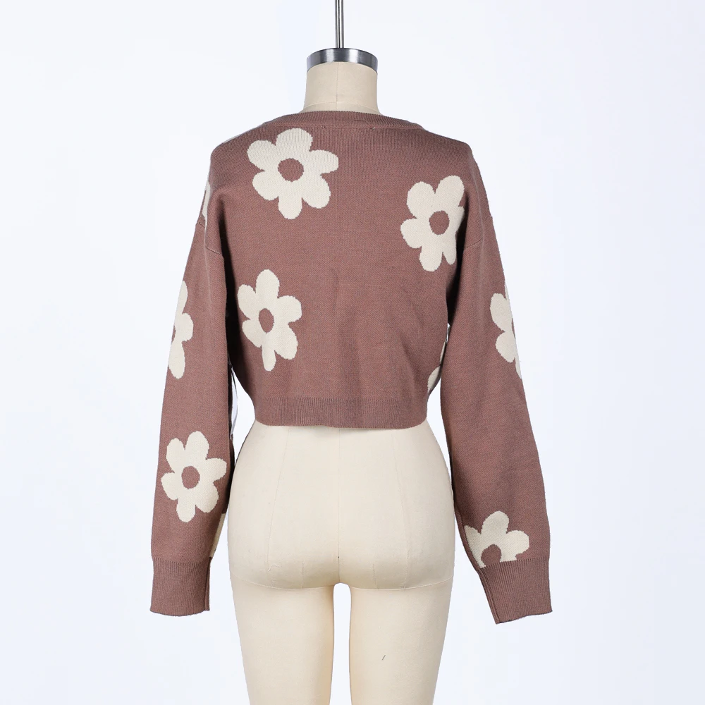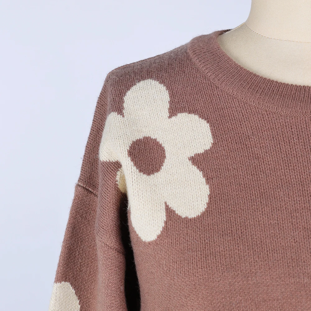 Customize Round Neck Heavyweight Fuzzy Wool Pattern Jacquard Sweaters Drop Shoulder Oversized Knit Warm Women Sweaters
