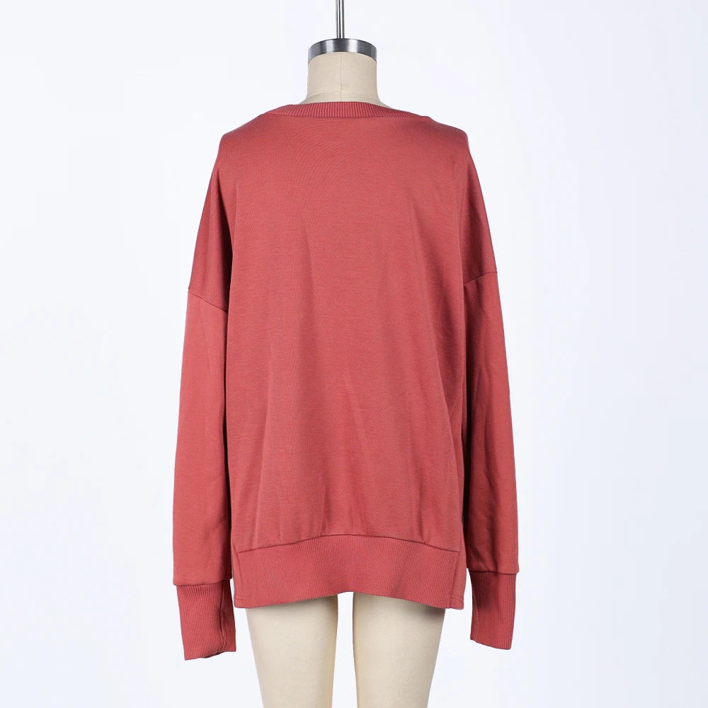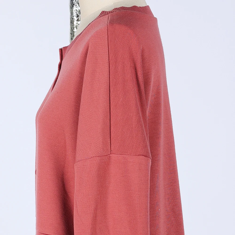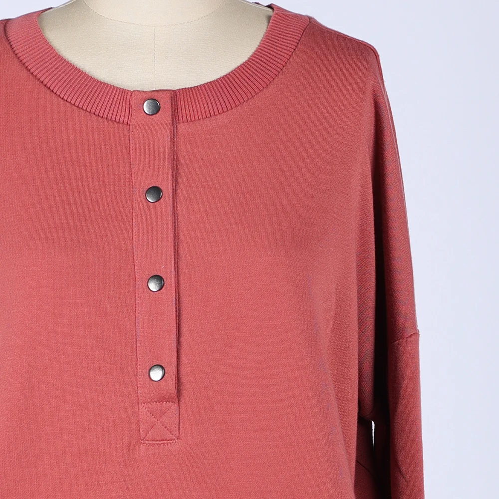 Custom French Terry Oversized Solid Hoodie Pullover Top Long Sleeve Front Button Sweatshirt Manufacturer for Women
