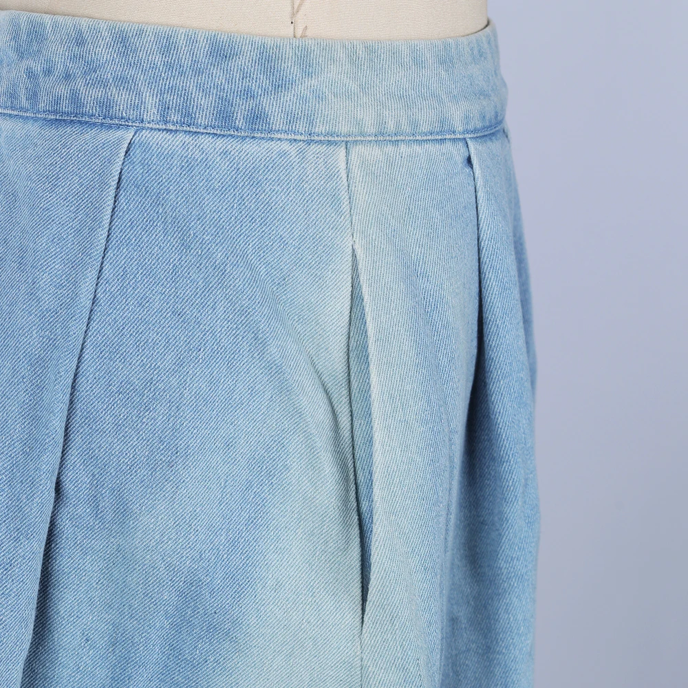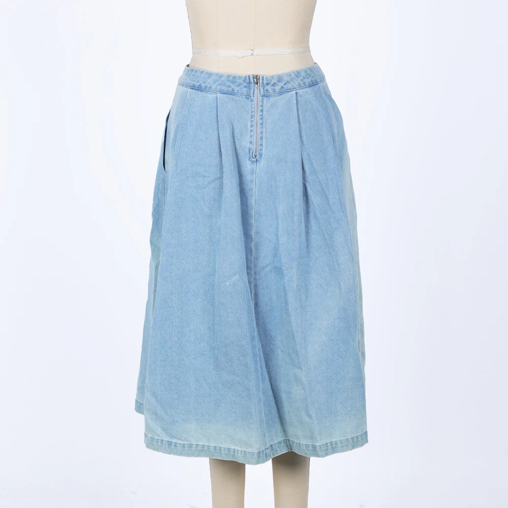 Customize Design Vintage Women's A-Line Midi Skirt Loose Casual Style Solid Color Washed Denim Elastic Zip Fashion Skirt