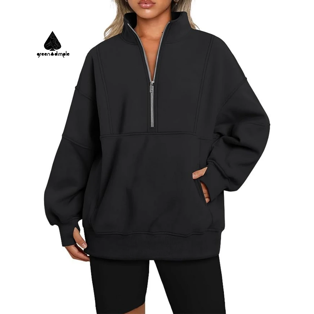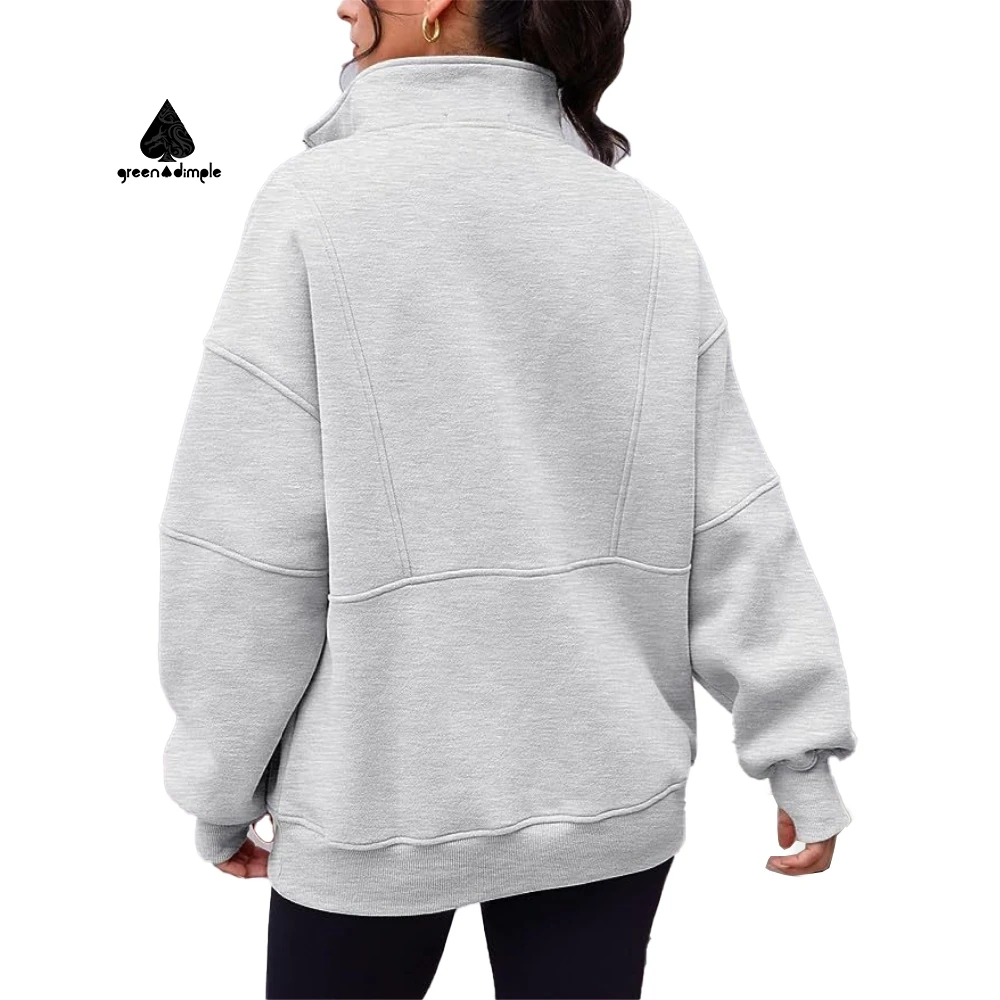 Custom Women Fall Heavyweight Pullover Autumn Winter Warm Fleece Cotton Half Zip Blank Crewneck Jogger Sweatshirt