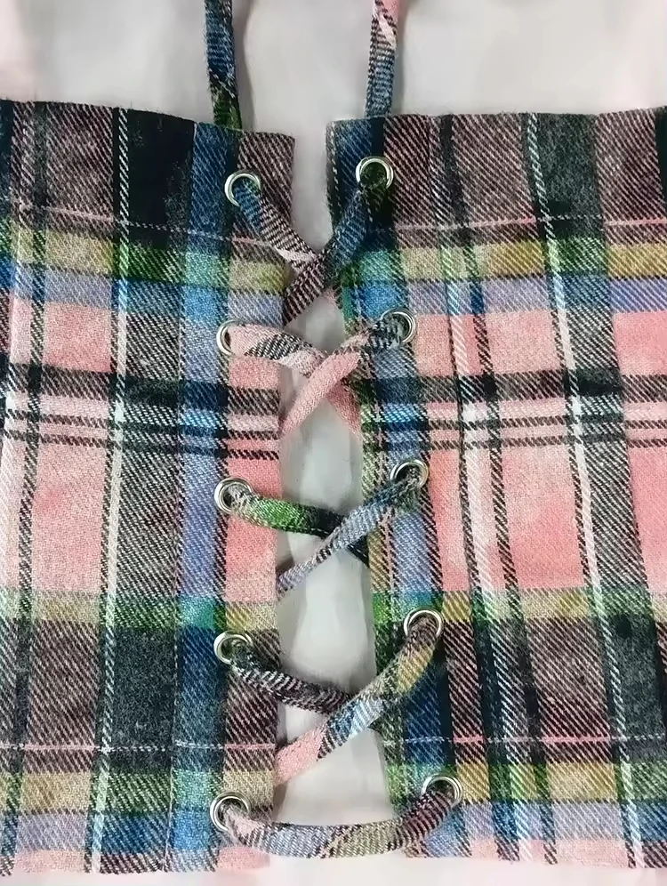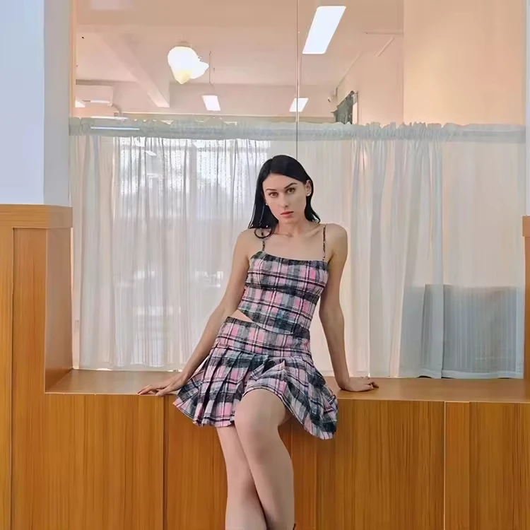 Custom Women Summer Plaid Slim Fit Vest Top and Tennis Skirt 2 Piece Ladies Outfits Skirt Set for Women