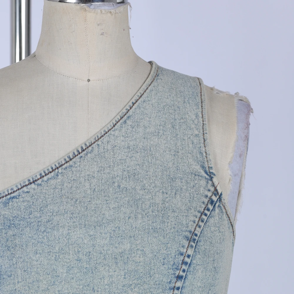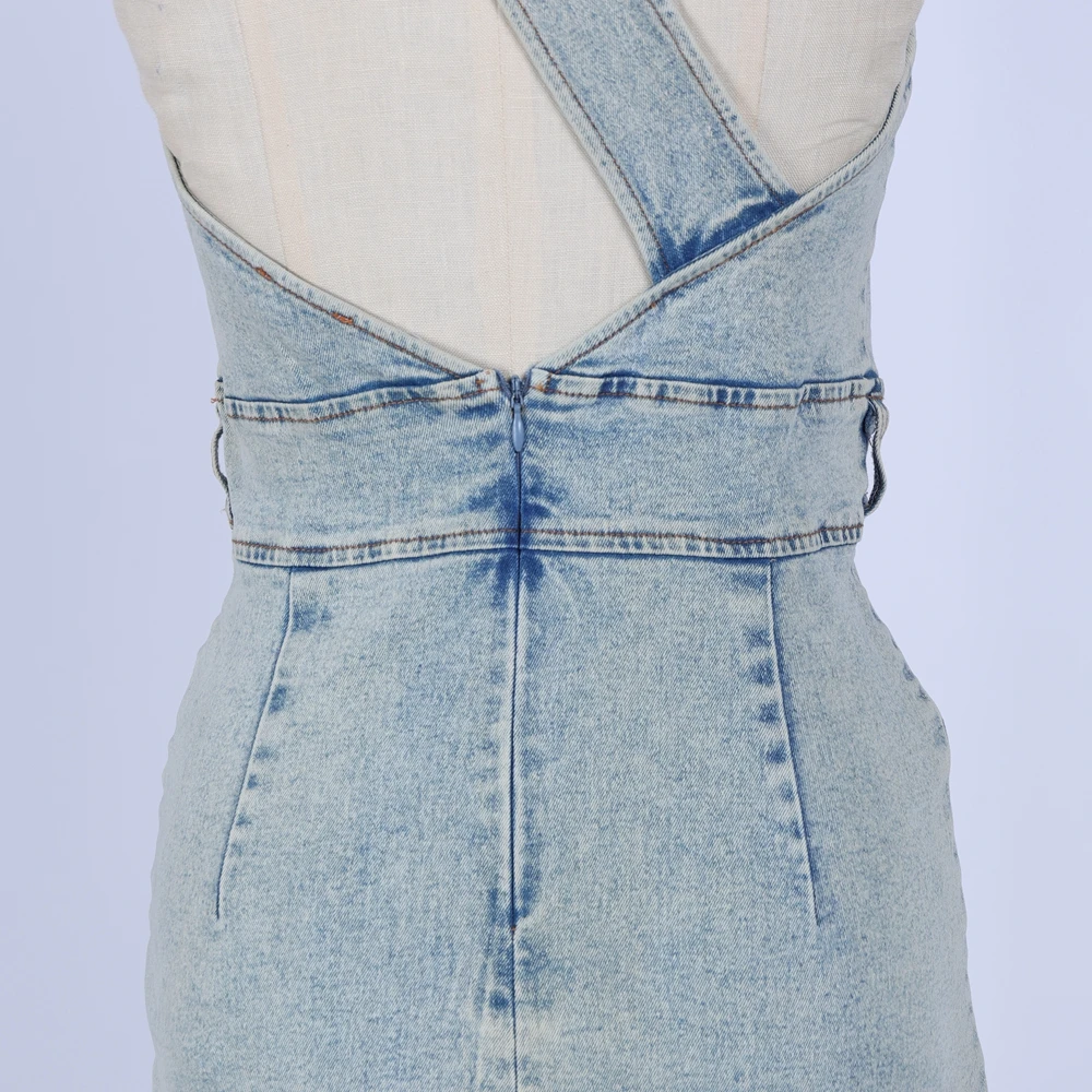 New Summer Streetwear Casual Women's One Shoulder Denim Mini Dress High Quality Fashion Denim Backless S;im Fit Dress