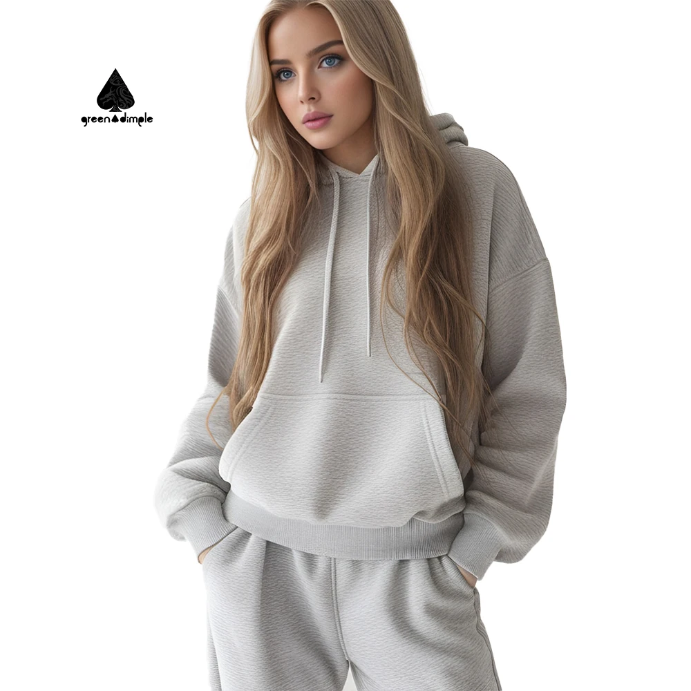 OEM High End 350GSM Women's Oversized Tracksuit Sets Top Hoodie Sweatshirt and Long Sweatpants Set for Women