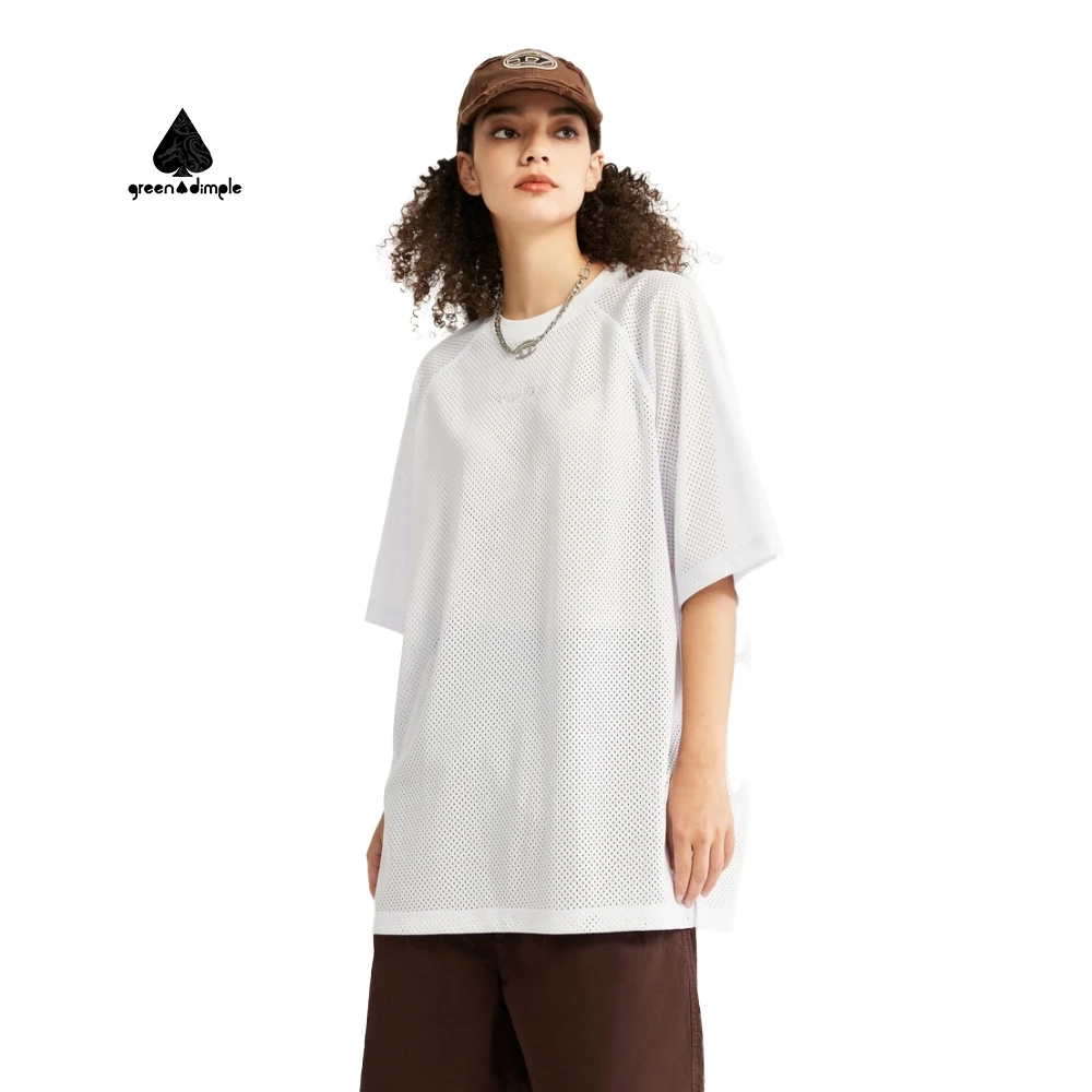 OEM Breathable Mesh Jersey Summer Sports T-shirt Embroidery logo Custom Tshirt Street Boxy Oversized Crewneck t Shirt for Women