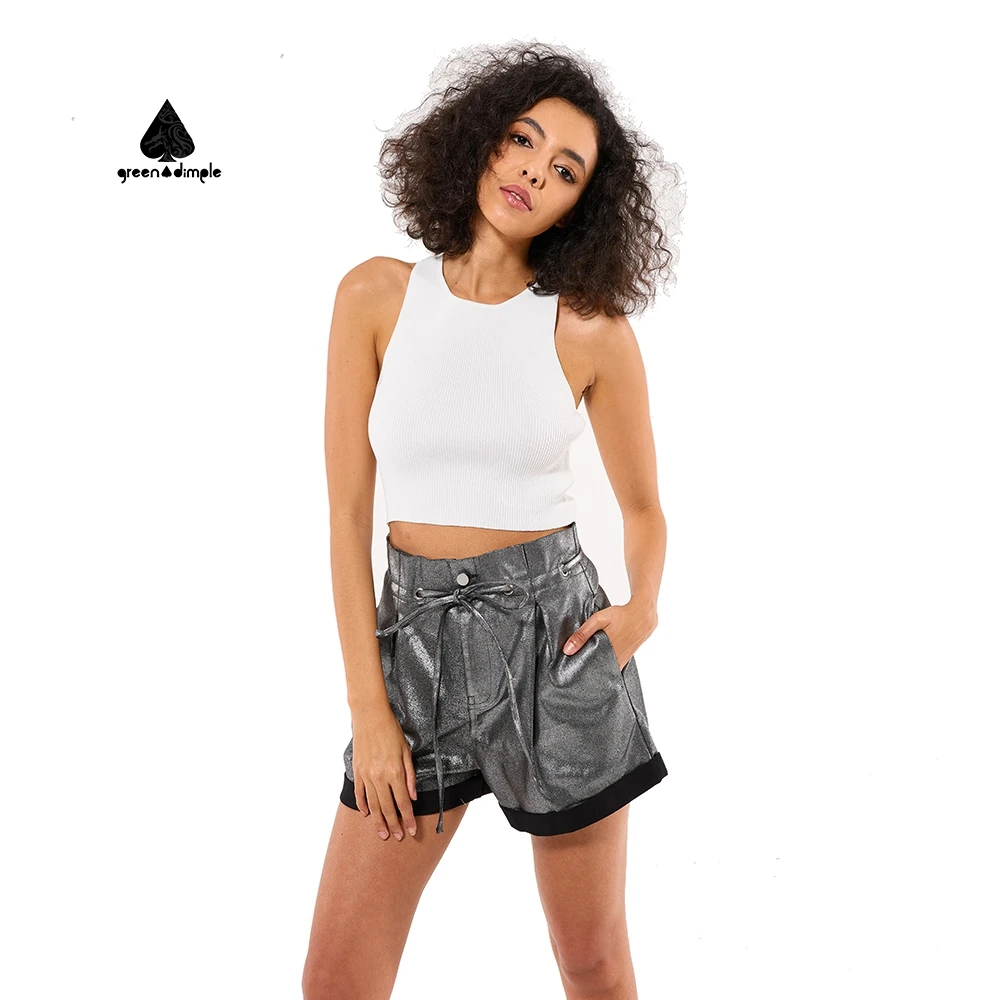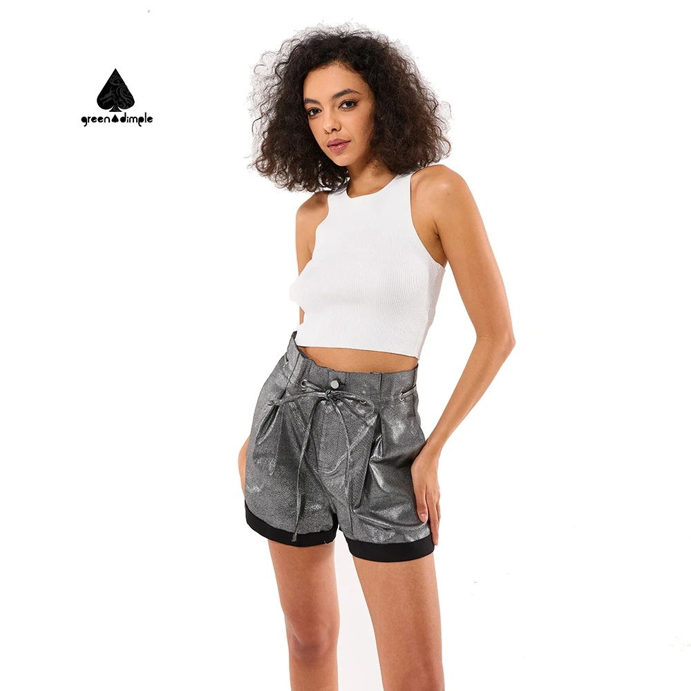 Women's Metallic Glitter High Waisted Shorts Cuffed Hem Edgy Fashion Trendy Stylish Comfortable Soft Fabric Summer Pants
