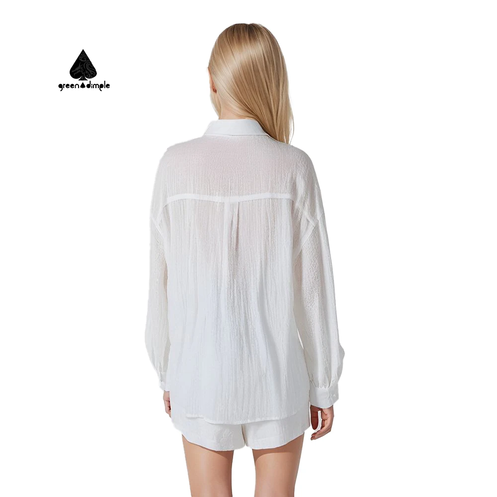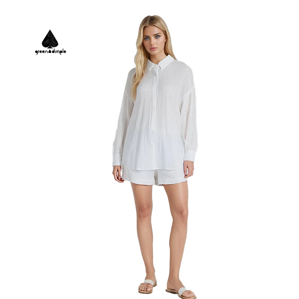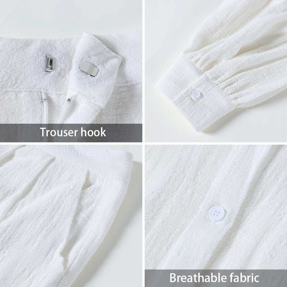 Custom Women's Clothing Manufacturers Women Cotton Linen Summer Long Sleeve Shirt and Short Pants Night Dress Casual Set