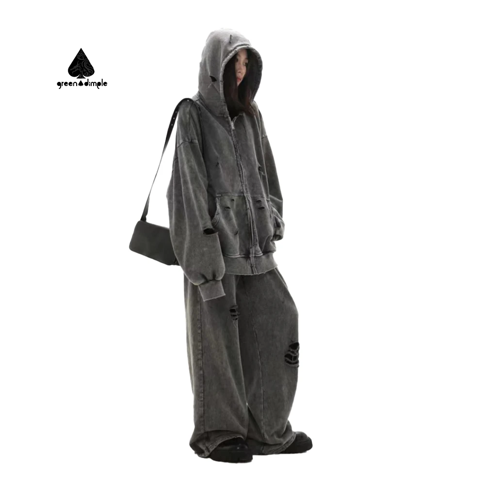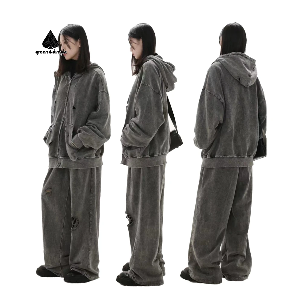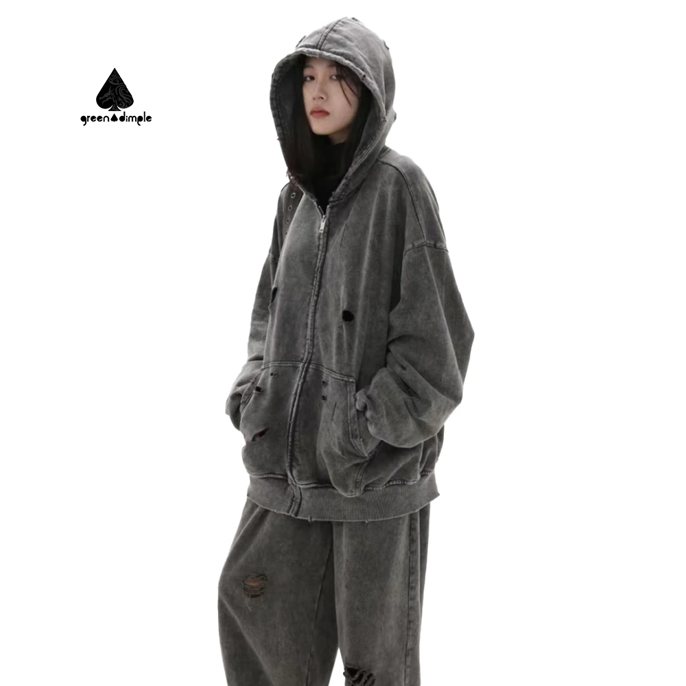 Women's Blank Break Oversized Hoodies Custom Destruction Long Sleeve Heavy Weight With Pocket Women Hoodie