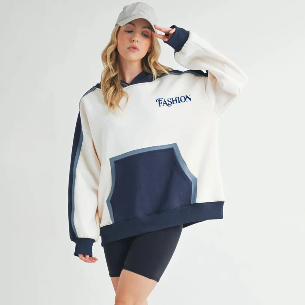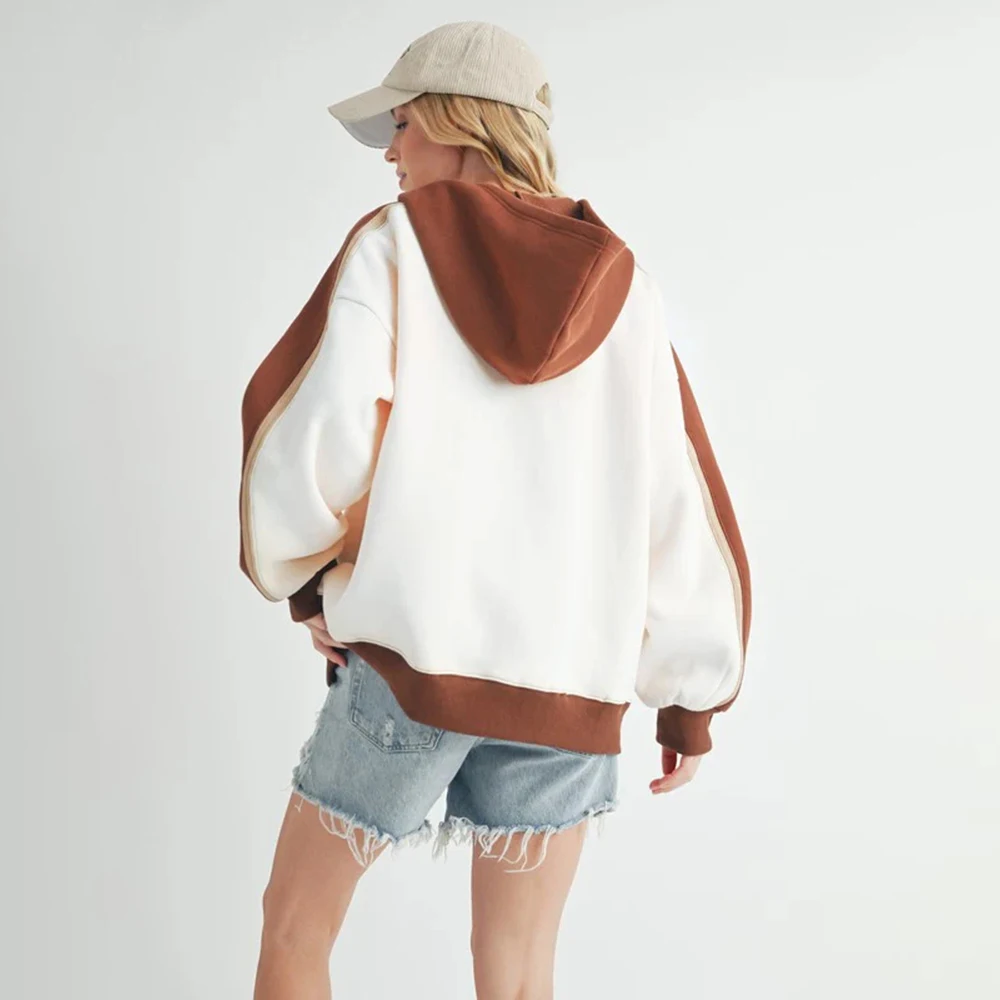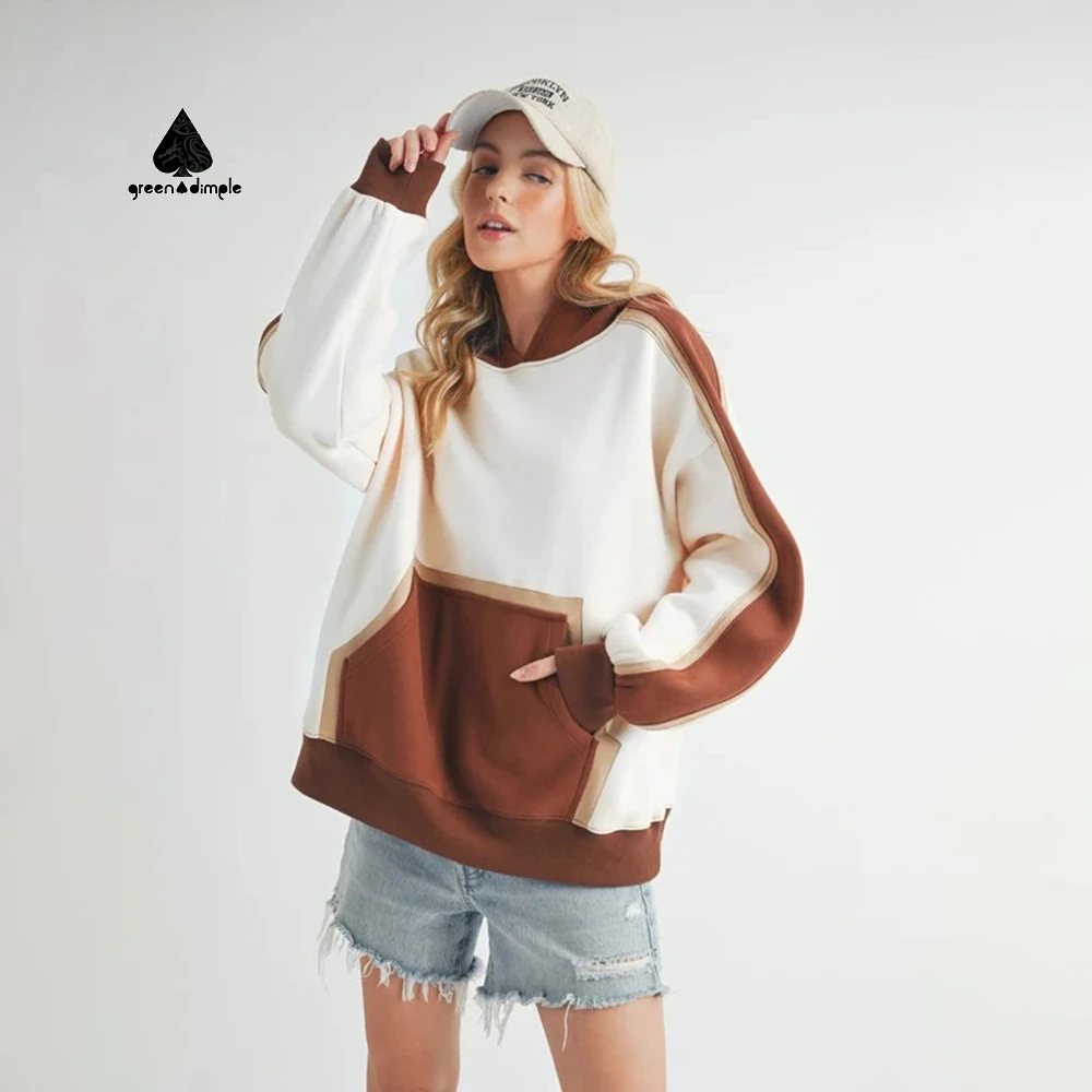 Custom Casual Kangaroo Pocket Heavy Weight Brown and Ivory Color Block Contrast Pullover Hoodie Winter Autumn Pullover Hoodie