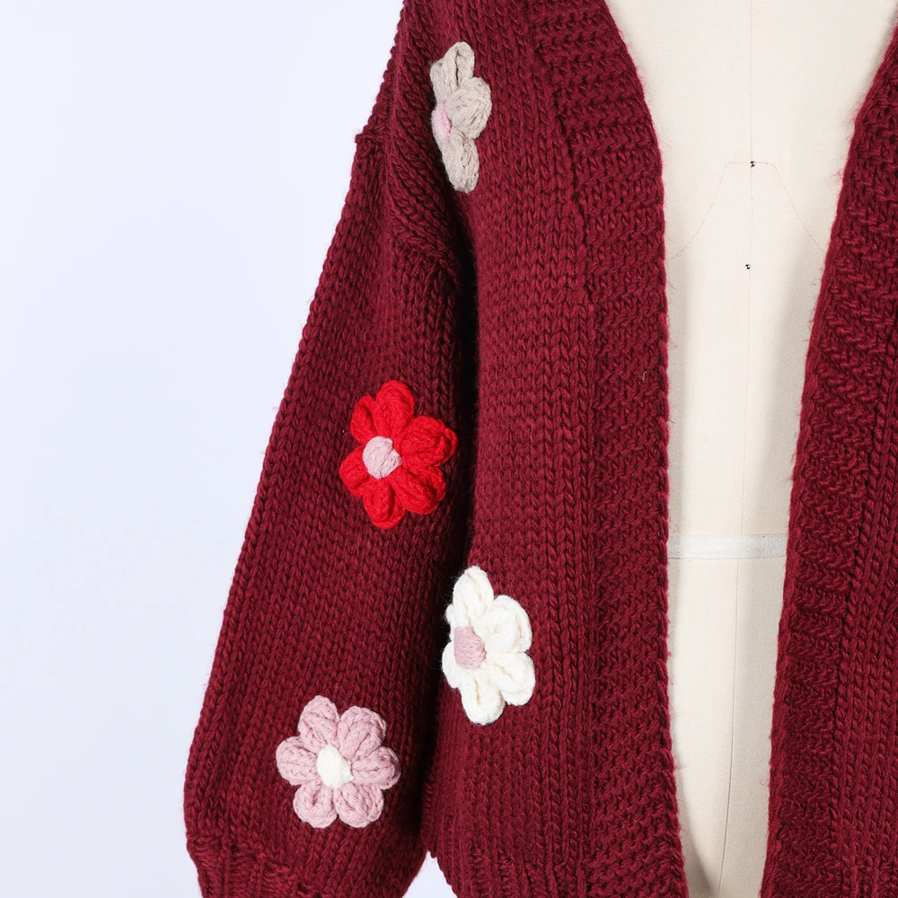 Custom Designer Flower Handmade Chunky Knit Cardigan Sweater Women Knitwear Hand Knitted Floral Women Sweaters Cardigans