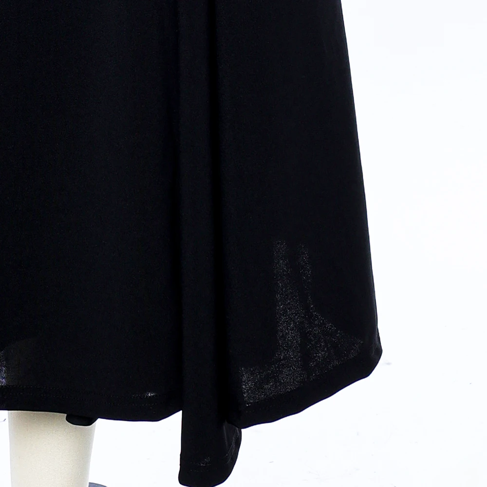 ZYHT 21938 Black Velvet Mini Dress Square Neck Long Puff Sleeves with Pearl Trim & Crystal Dess Flared Scalloped Hem Dresses