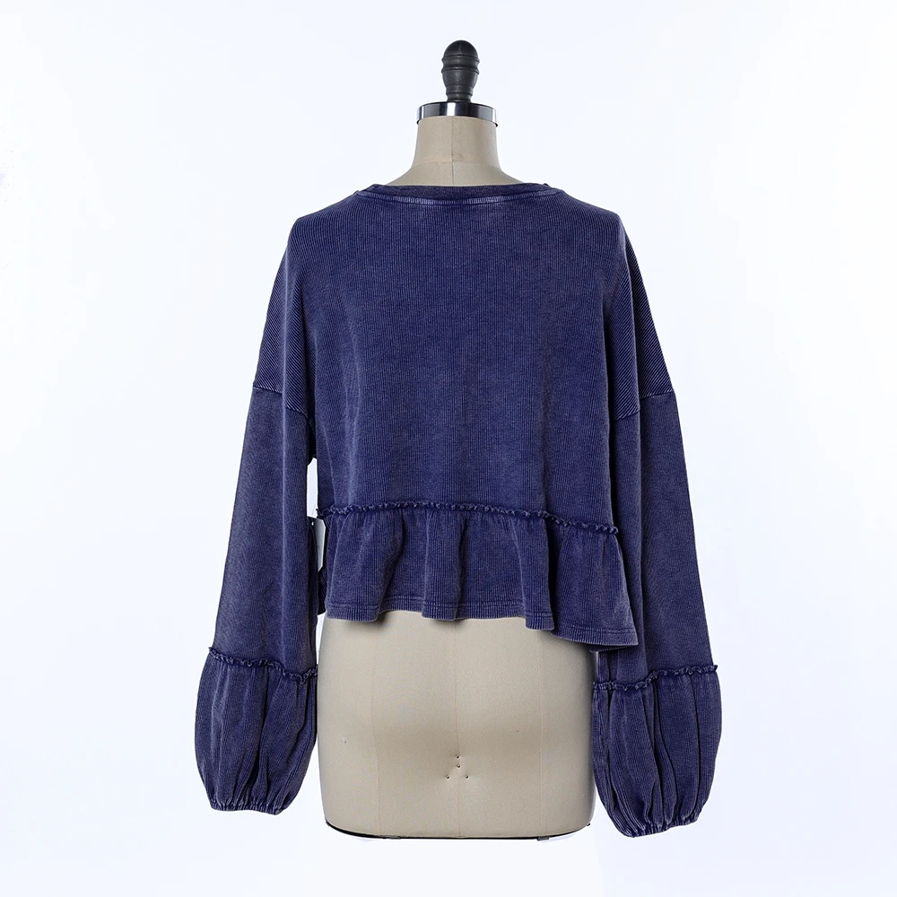 ZYHT 35239 Women's Elegant Black Velvet Blazer with White Ruffled Trim Peplum Hem & Long Puff Sleeves Chic Formal Jacket