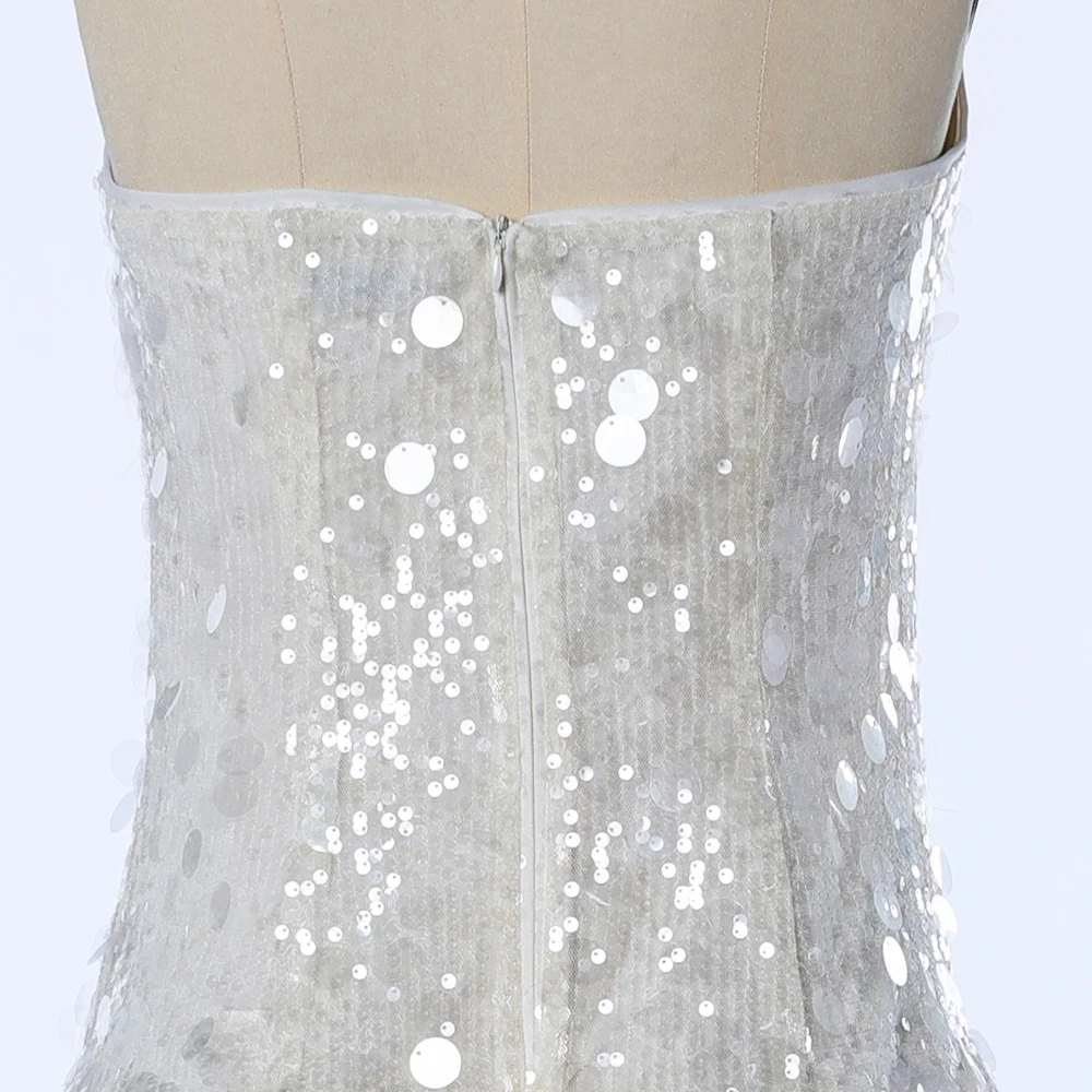 Custom High End Dress Manufacturer White Prom Bodycon Maxi Evening Party Dress Women's Sequined Designer Formal Club Gown