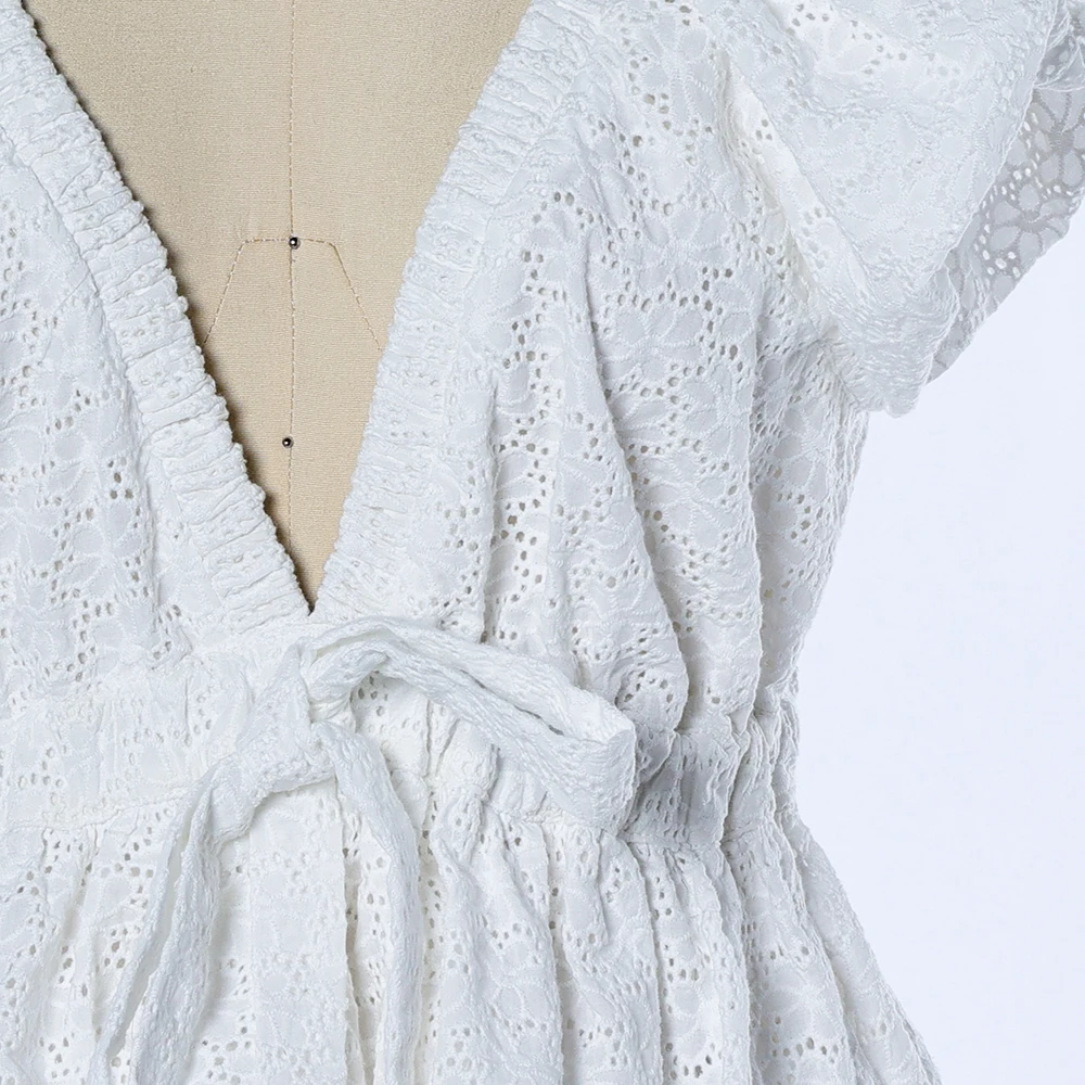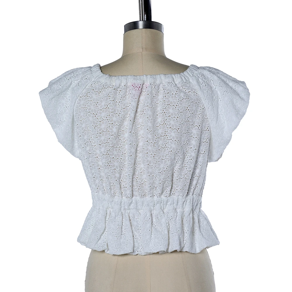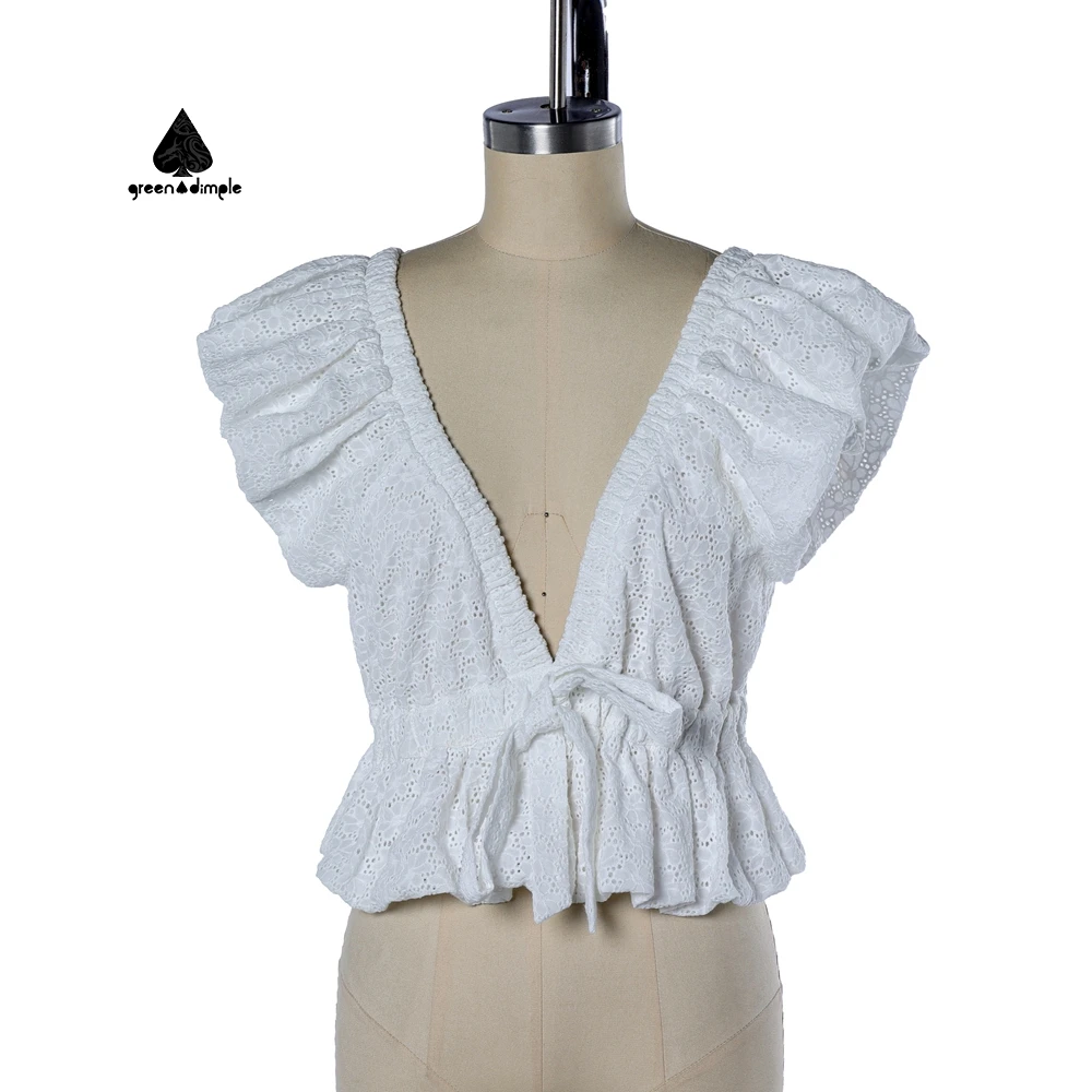 ZYHT 82024 White Blouse with Ruffled Cap Sleeves V-Neck Blouses Et Chemises Pour Femmes White Blouses for Women