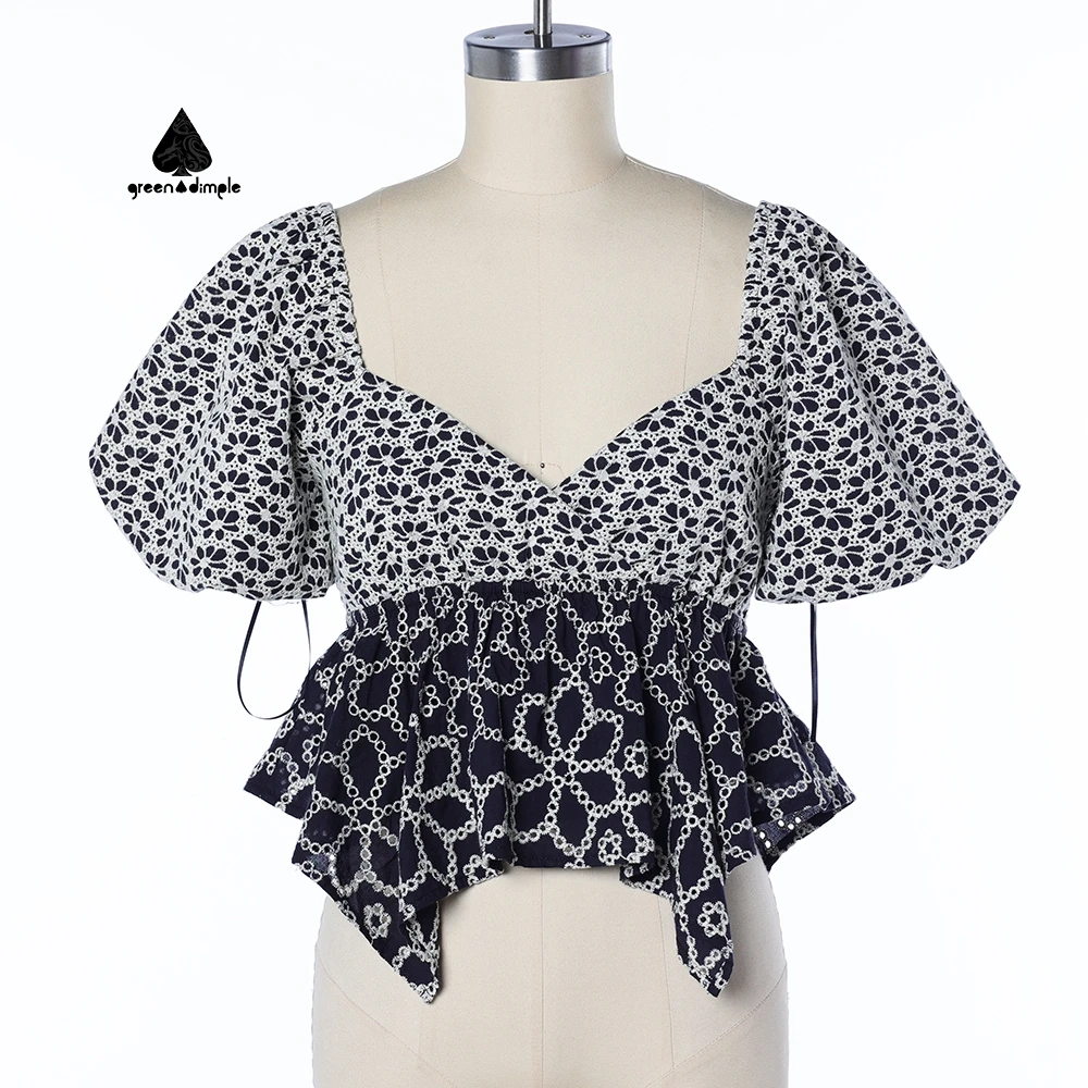 Women's Clothing Manufacturer Custom Embroidery Summer Short Sleeves V Neck Casual Basic Top Sweet Style Sleeveless Shirt