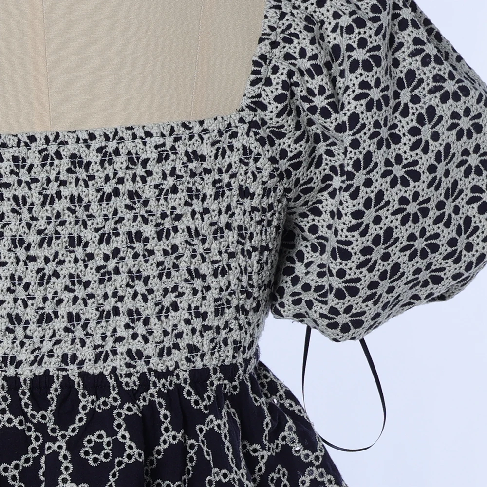 ZYHT 21938 Black Velvet Mini Dress Square Neck Long Puff Sleeves with Pearl Trim & Crystal Dess Flared Scalloped Hem Dresses