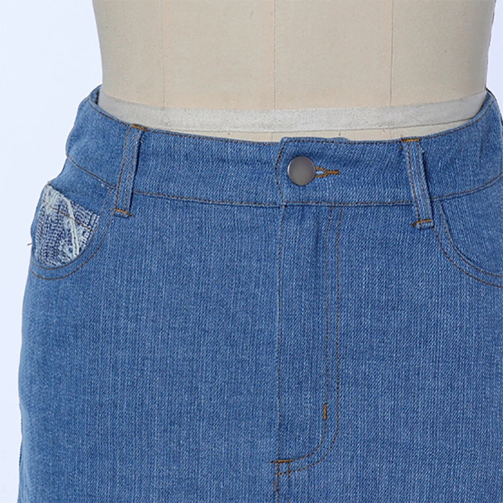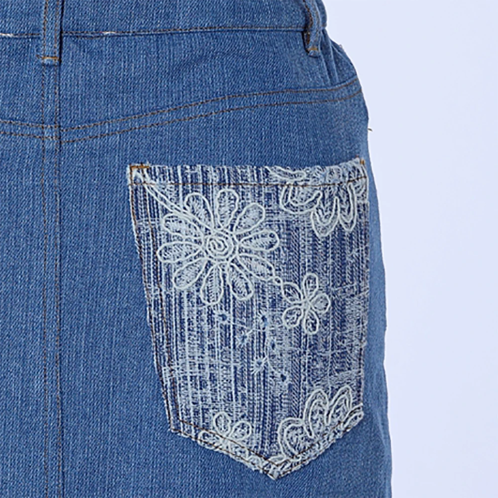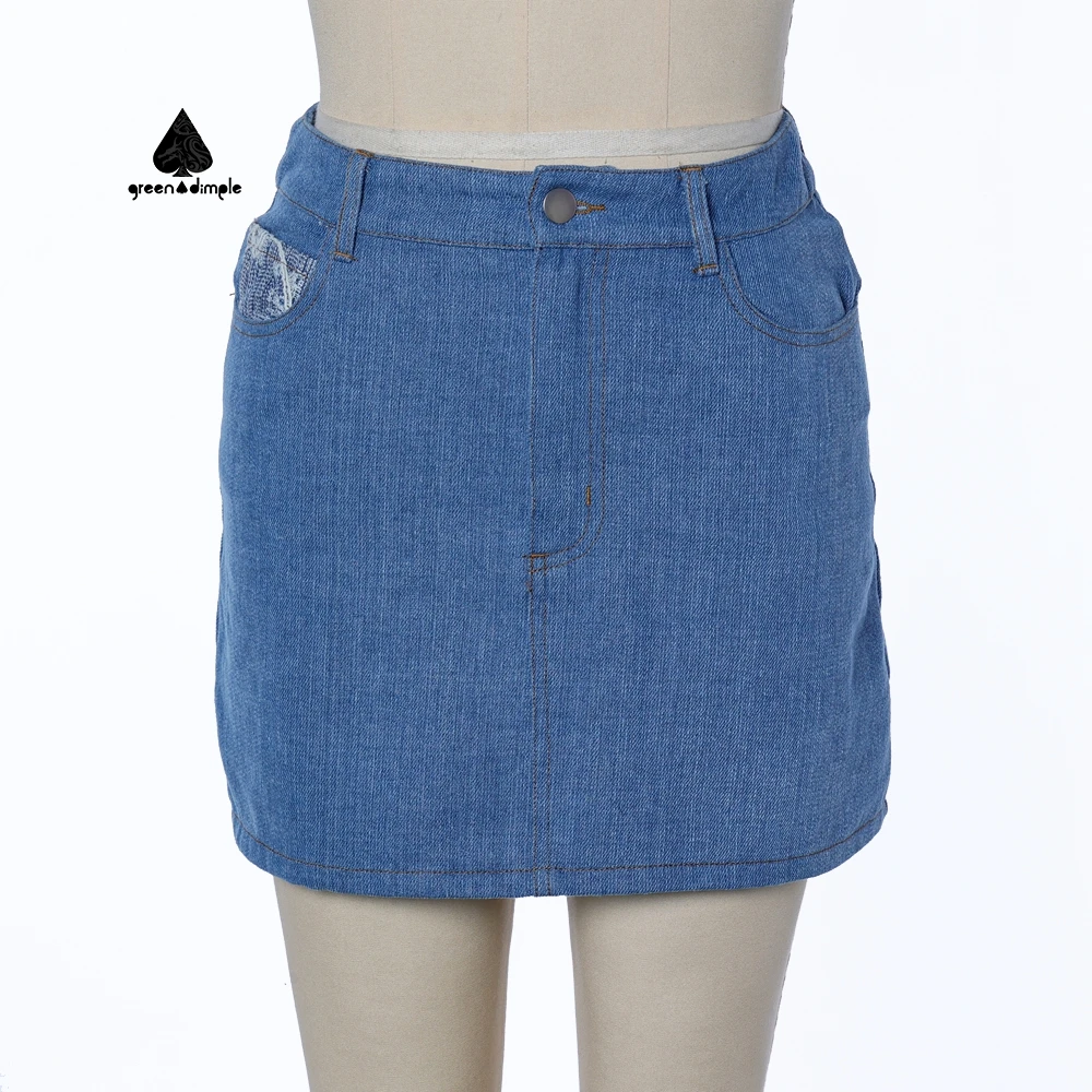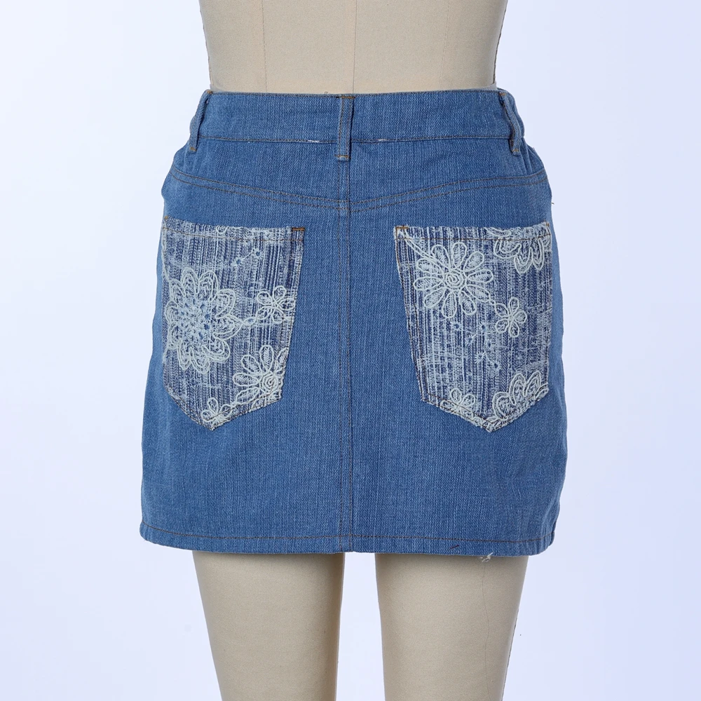 Denim Low Rise Skirt Womens Low Waist Embroidery Pockets Jean Skirt Vintage Y2k Bodycon A-line Mini Skirt