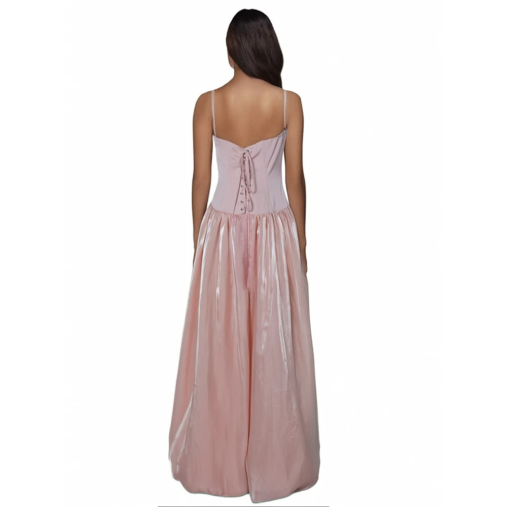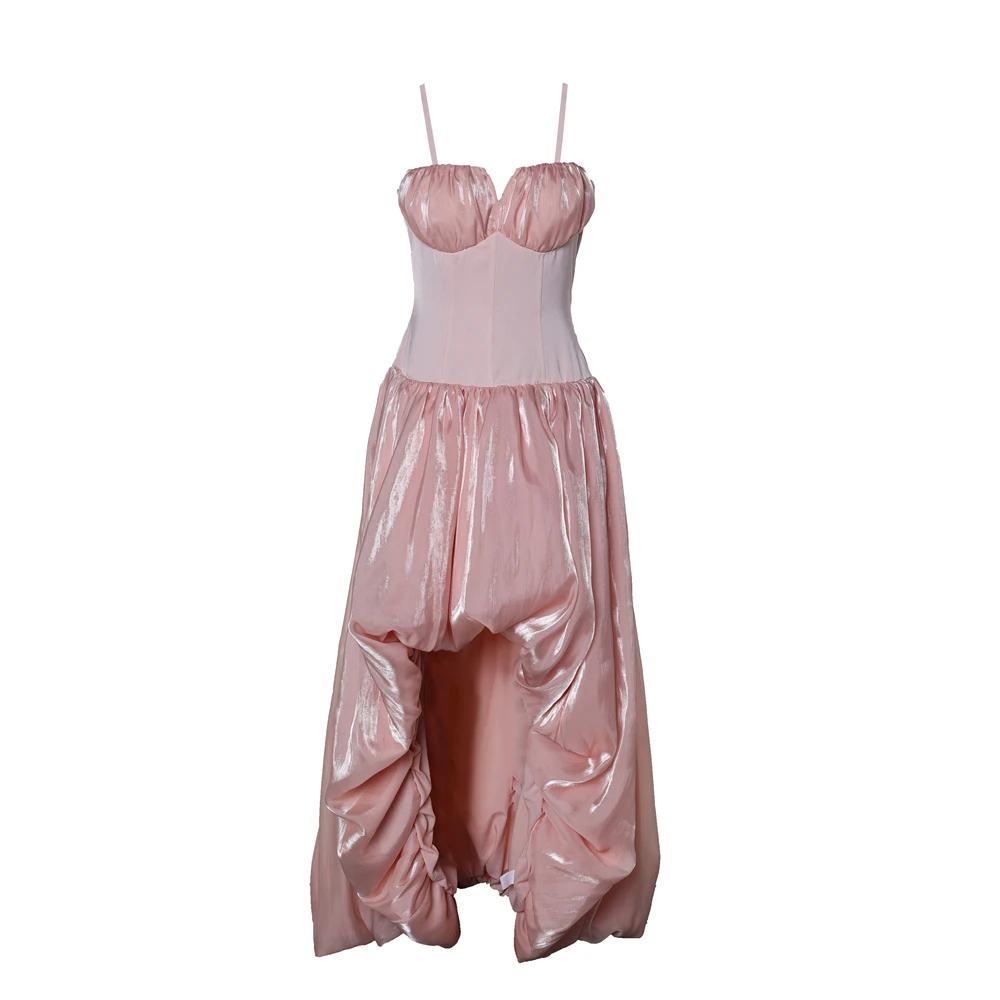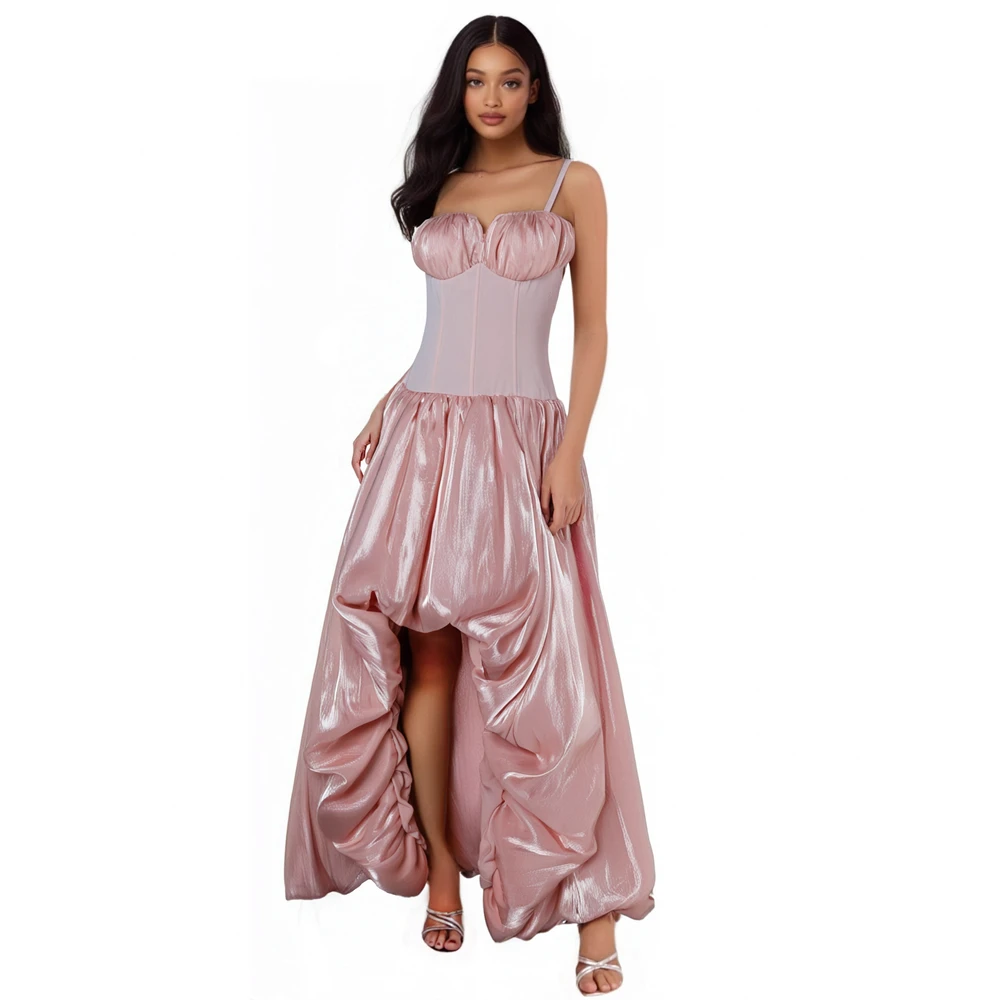 Women's Low Cut Satin and Chiffon Sleeveless Nightclub Party Pleated Dress Sexy Fashion Dress Front Slit Ball Gown Dress