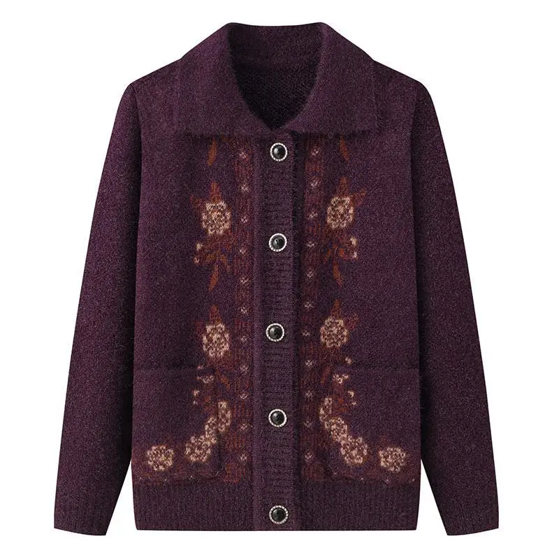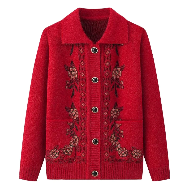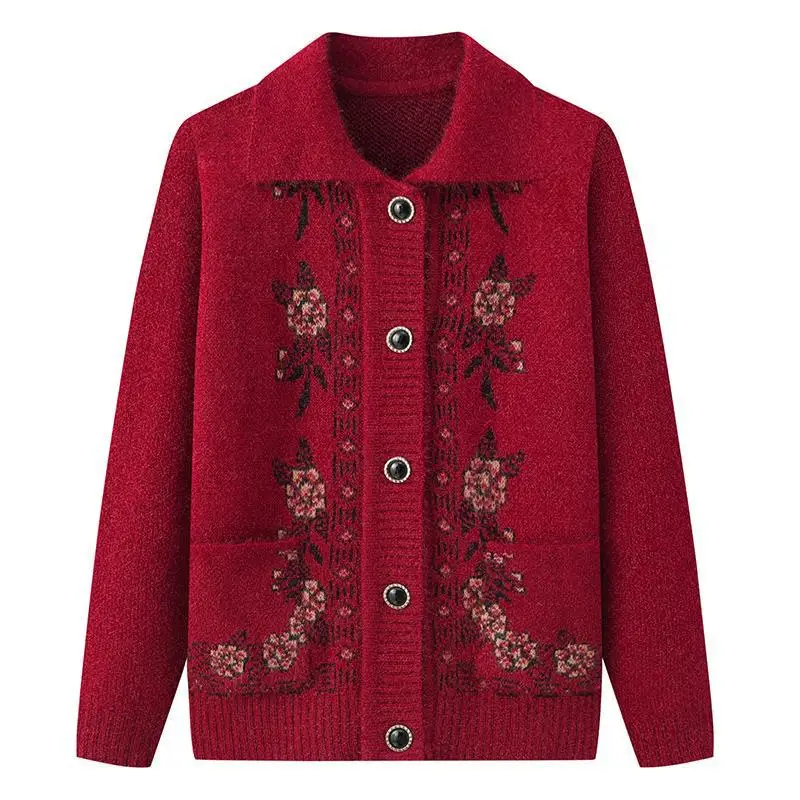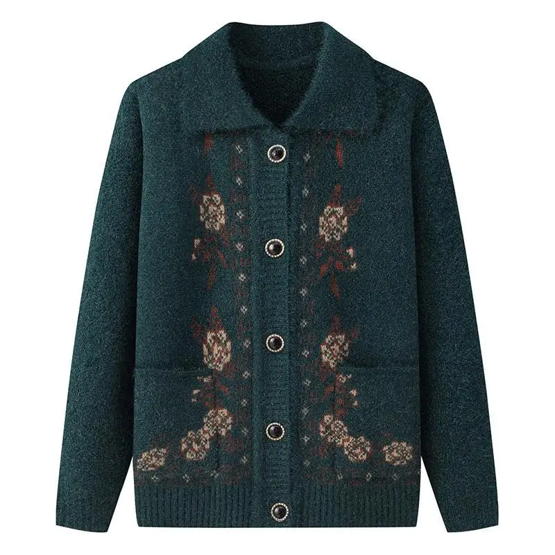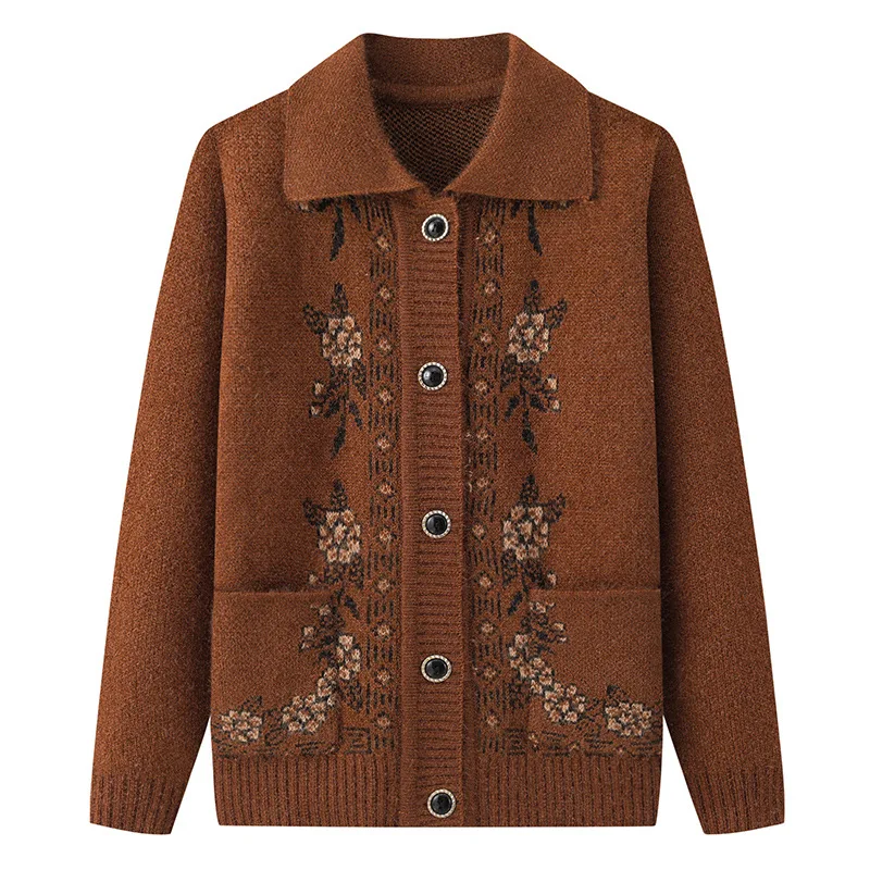 New Arrival Casual Single Breasted Button Winter Coat for Elderly Women Spring Autumn Knitted Cardigan