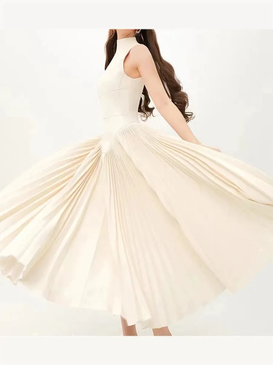 High Quality 2025 Summer New Style Fashionable Half High Neck Sleeveless A-Line Irregular Long Dress Slim Fit