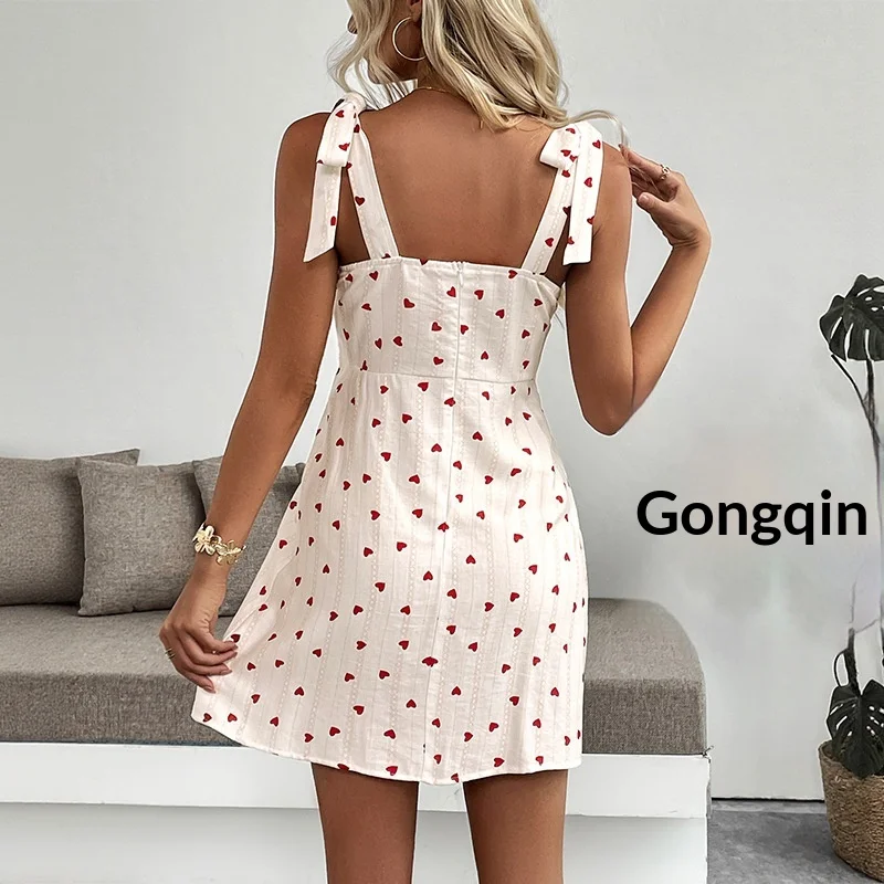 The 2026 New Summer Bestseller V-neck Backless Short Halter Dress with Heart Pattern for Women