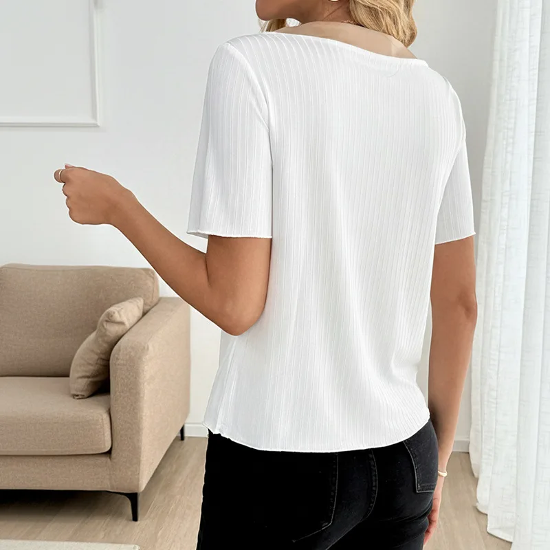 ZYHT 82024 White Blouse with Ruffled Cap Sleeves V-Neck Blouses Et Chemises Pour Femmes White Blouses for Women
