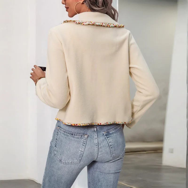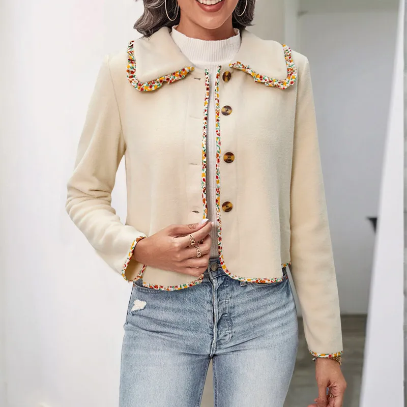 Autumn/Winter Women's Casual 100% Polyester Fleece Cardigan Lapel Thick Short Coat with Single Breasted Closure