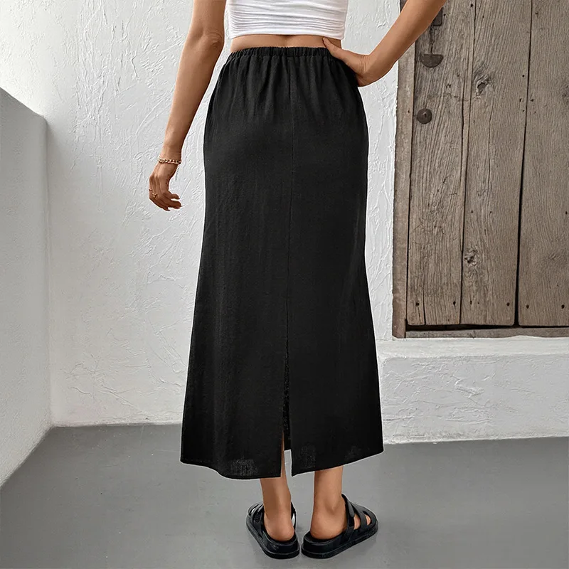 A casual solid-color basic black dress for women and an elegant summer commuting skirt