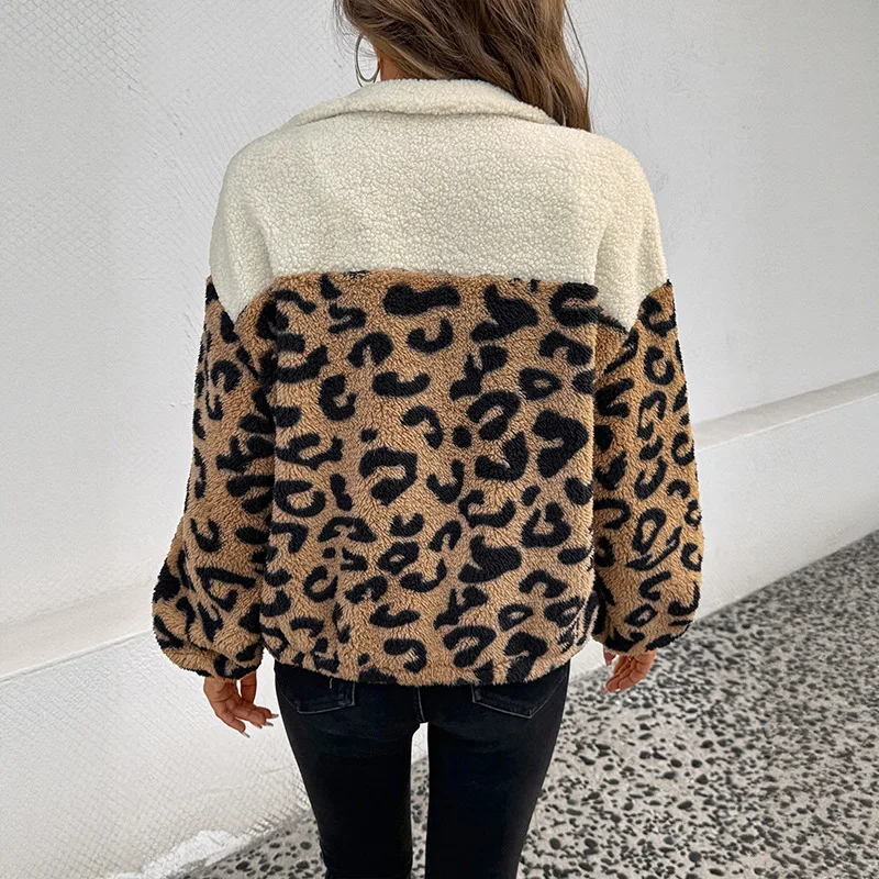 Winter women's thick and warm coat, leopard print patchwork zipper cardigan, 2025 women's fashionable retro coat