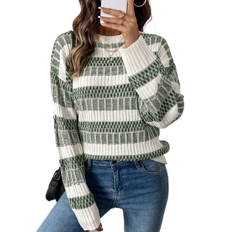 Independent Station's New European American Autumn Korean Women's Sweater Knitted Thick Double Stripe