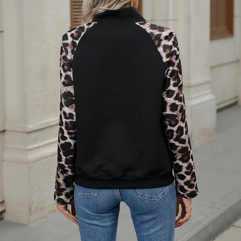 The 2025 Autumn New Cross-border Casual and Individualized Street Semi-high Collar Cardigan with Leopard Print Patchwork Hoodie
