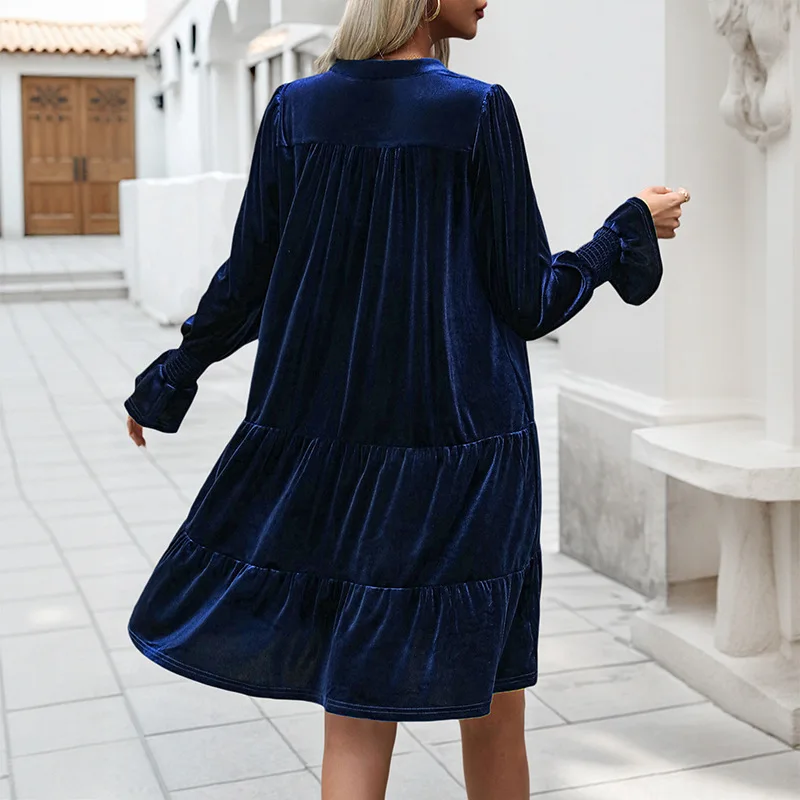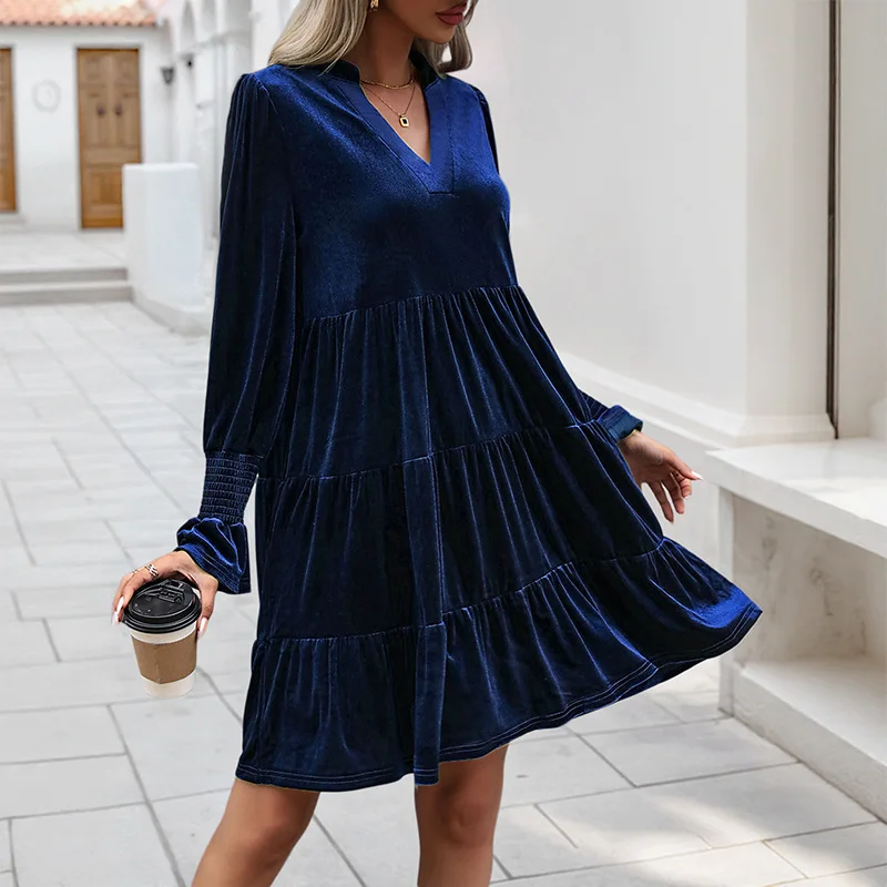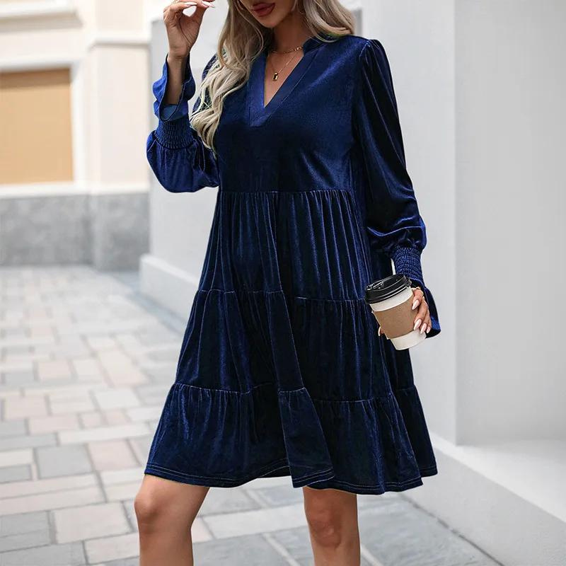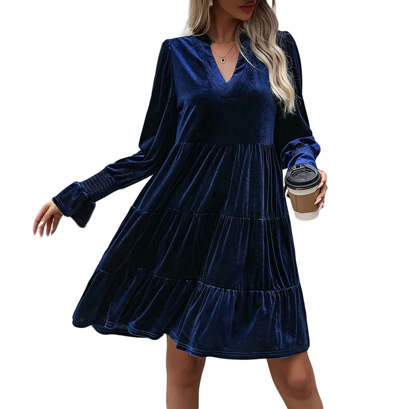 Casual party outfits: Velvet dress, long-sleeved patchwork doll dress, loose layered cake dress