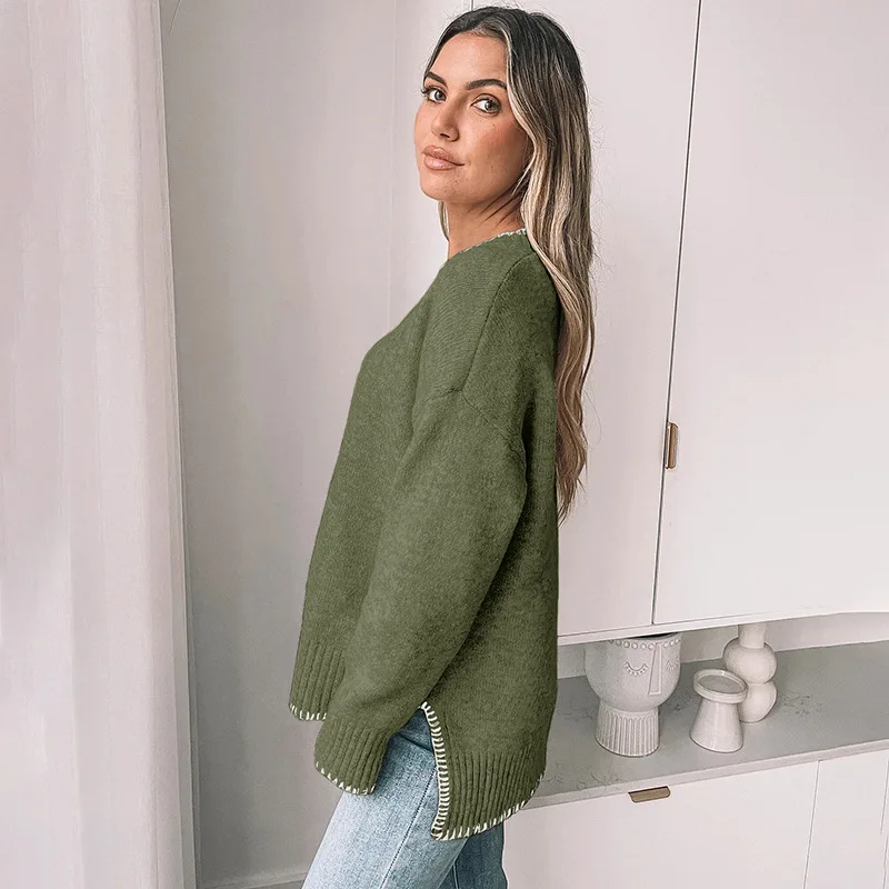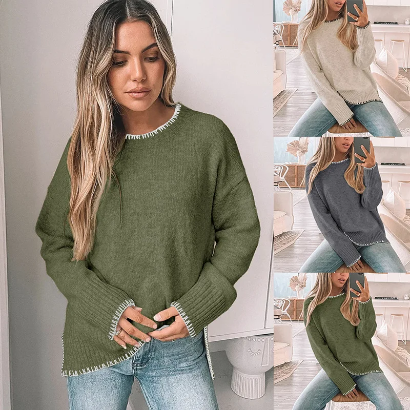 Women's autumn round-neck line color-blocking sweater for commuting, casual and fashionable pullover, winter knitted sweater top