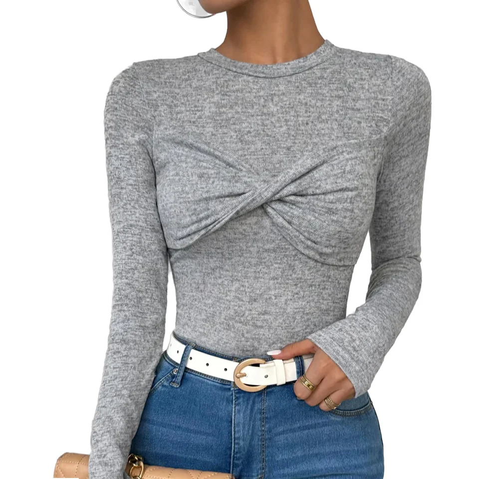 New Women's Long Sleeved Slim Fit T-shirt Casual O-neck Solid Color Cotton Polyester Summer Blank Women's logo