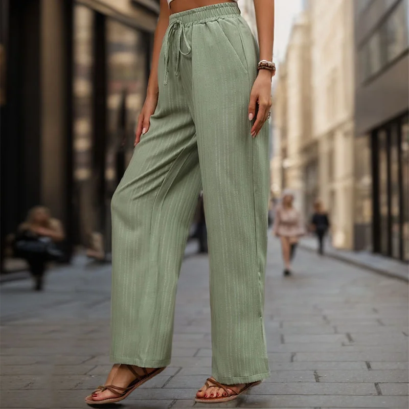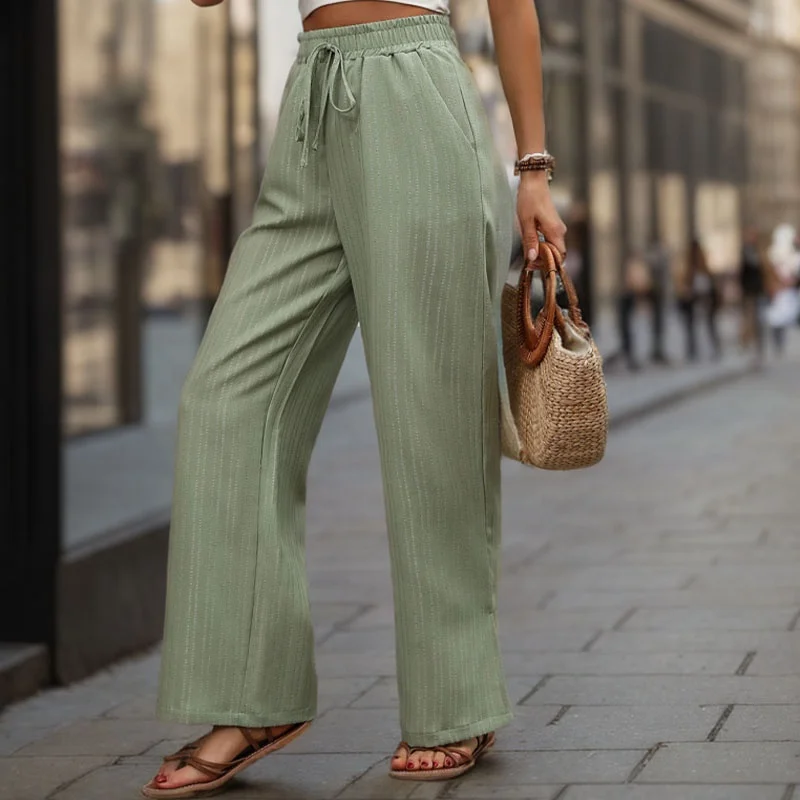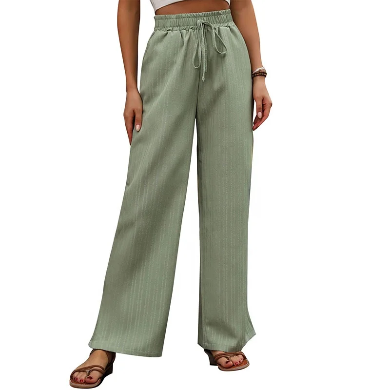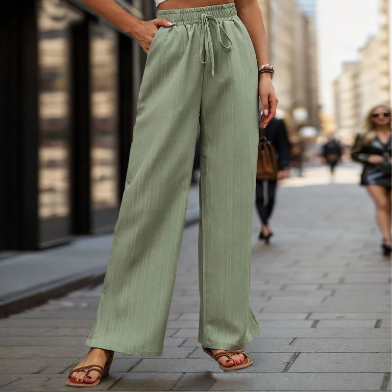 American 2024 Summer New Retro Casual Women's Waist Tie up Mint Green Solid Loose Wide Leg Pants OEM/ODM Customizable Long Pant