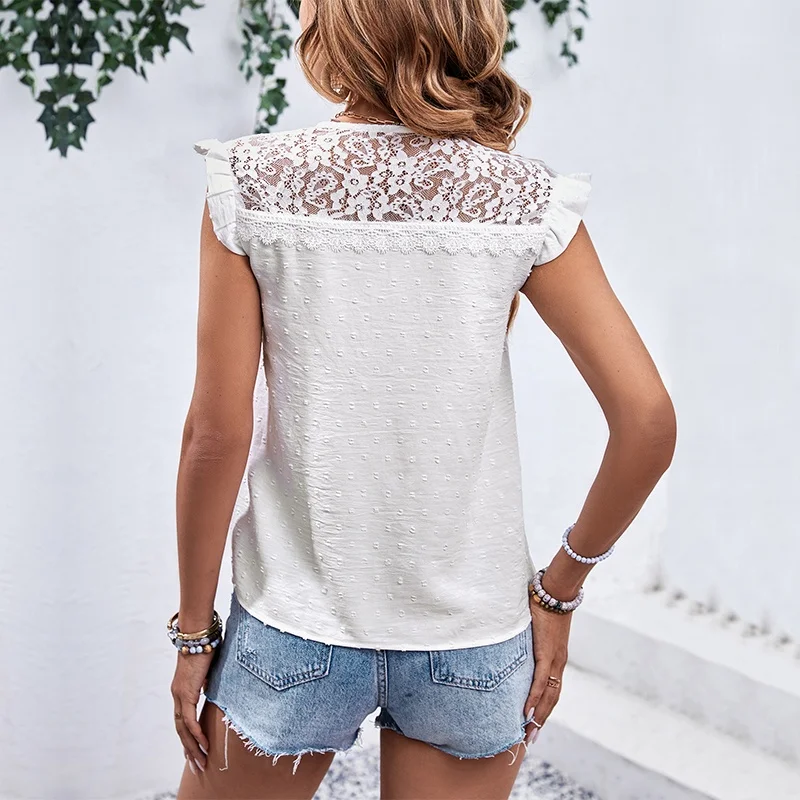 European and American Style Summer Hot Selling Women Top Lace Casual Temperament Commuting Women's Shirt Lace Patchwork Blouses