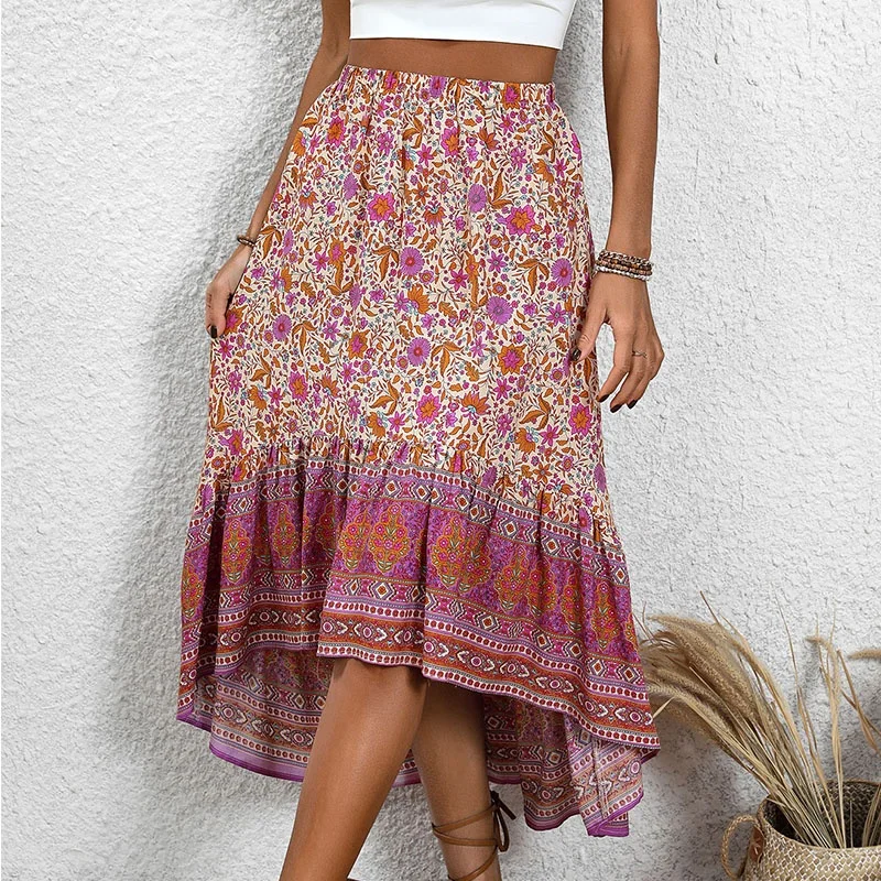 European and American 2024 Summer New Fashion Casual Women's Wear Bohemian Floral Print Skirt Elegant Women's Half Skirts