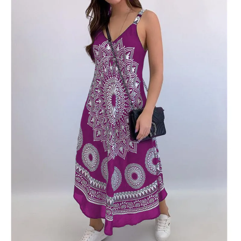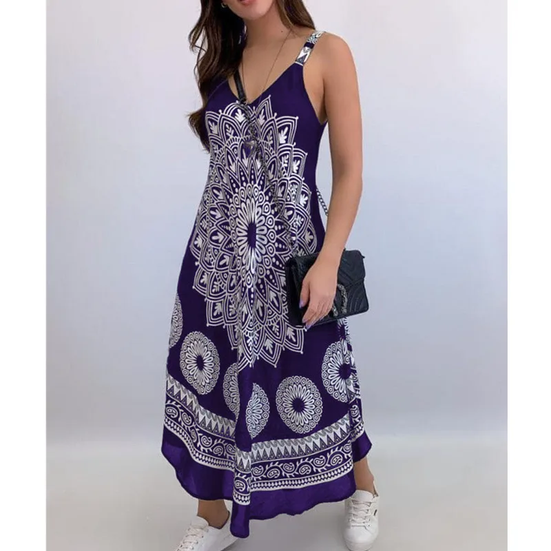 Hot Selling Sleeveless Bohemian Beach Dress, Floral Casual Elegant T-shirt Dress for Women