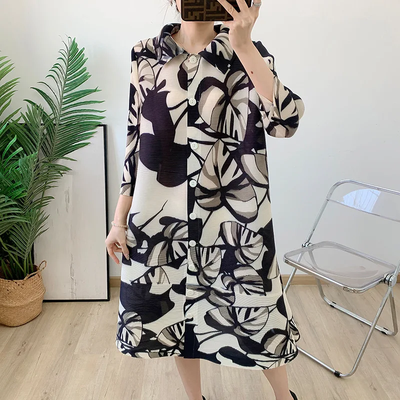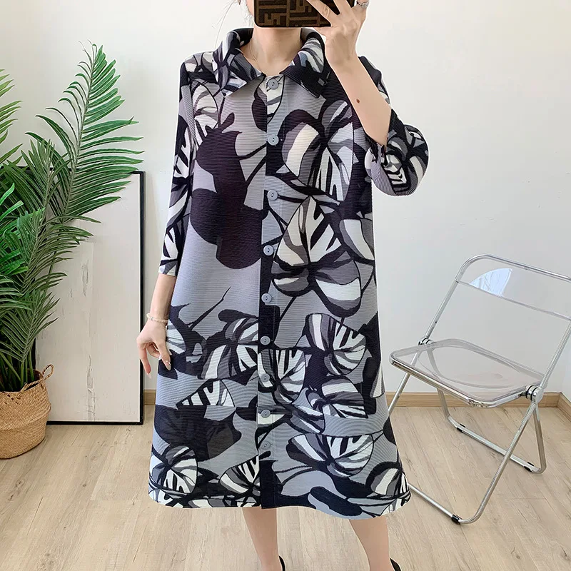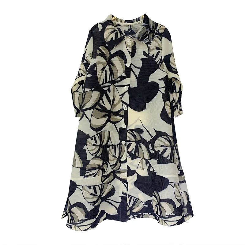 2025 Spring/summer Stand up Collar Breasted Cardigan Loose Print Middle-aged and Elderly Jacket Skirt for Women