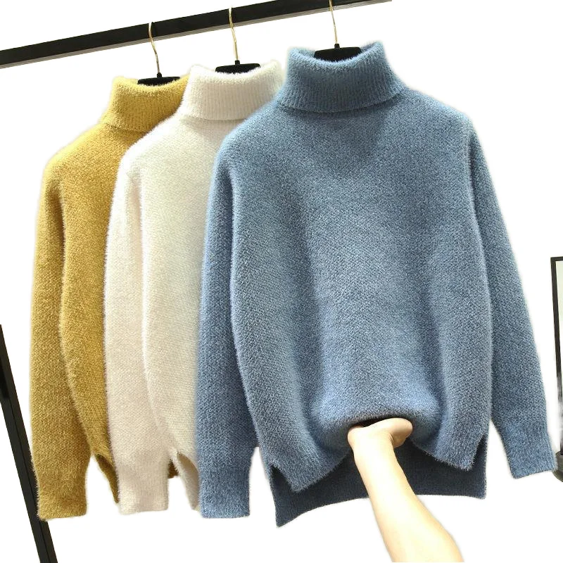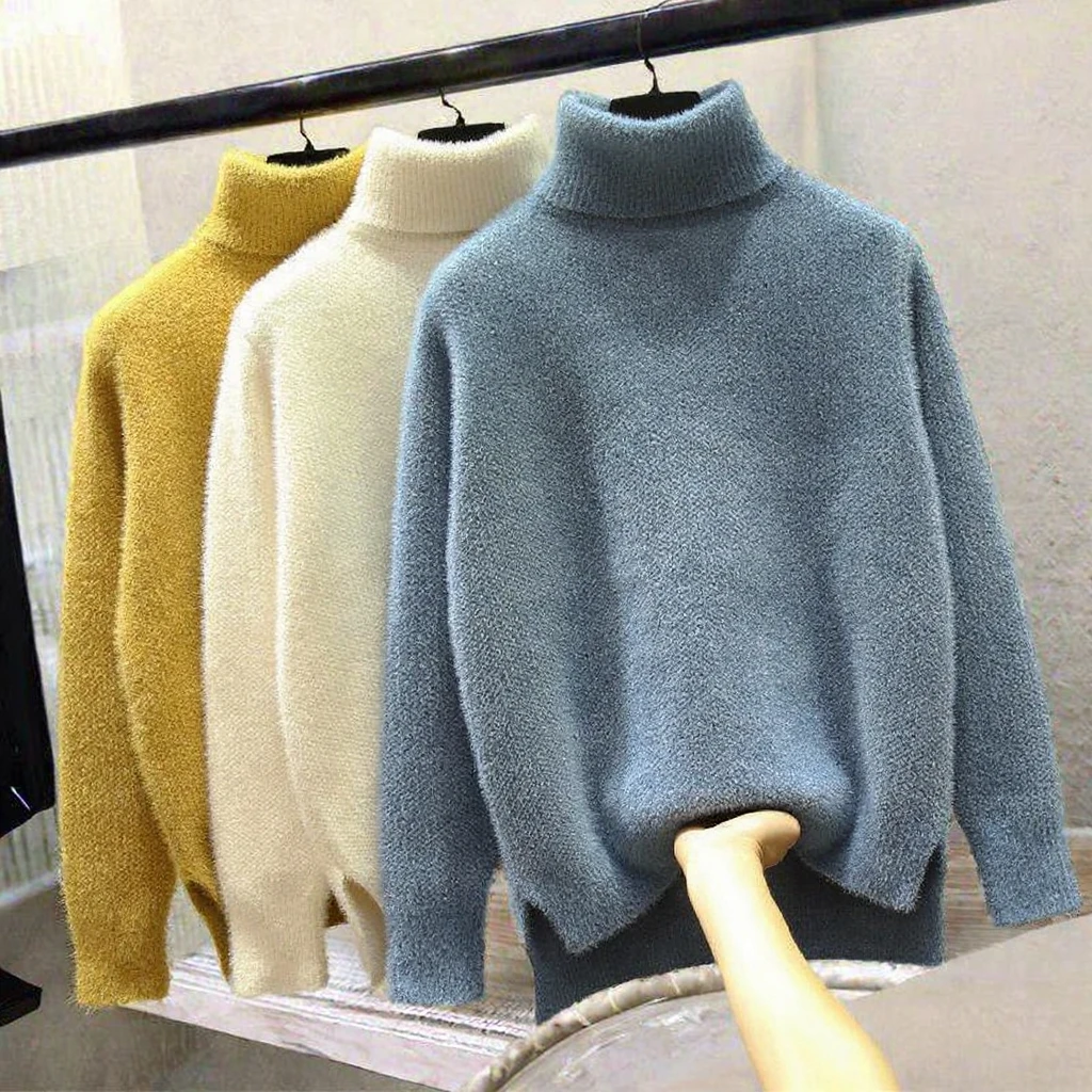 Women's 2024 Winter Turtleneck Sweater Breathable Knitted Top with Solid Pattern Streetwear Style