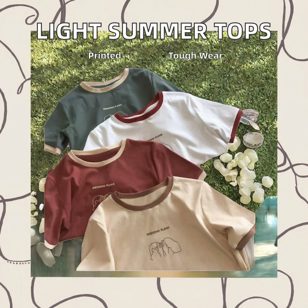 Women's Summer Tops Cheap 180G Lightweight Short T-Shirts Casual Solid Pattern Knitted Wholesale Printed T-Shirts for Women