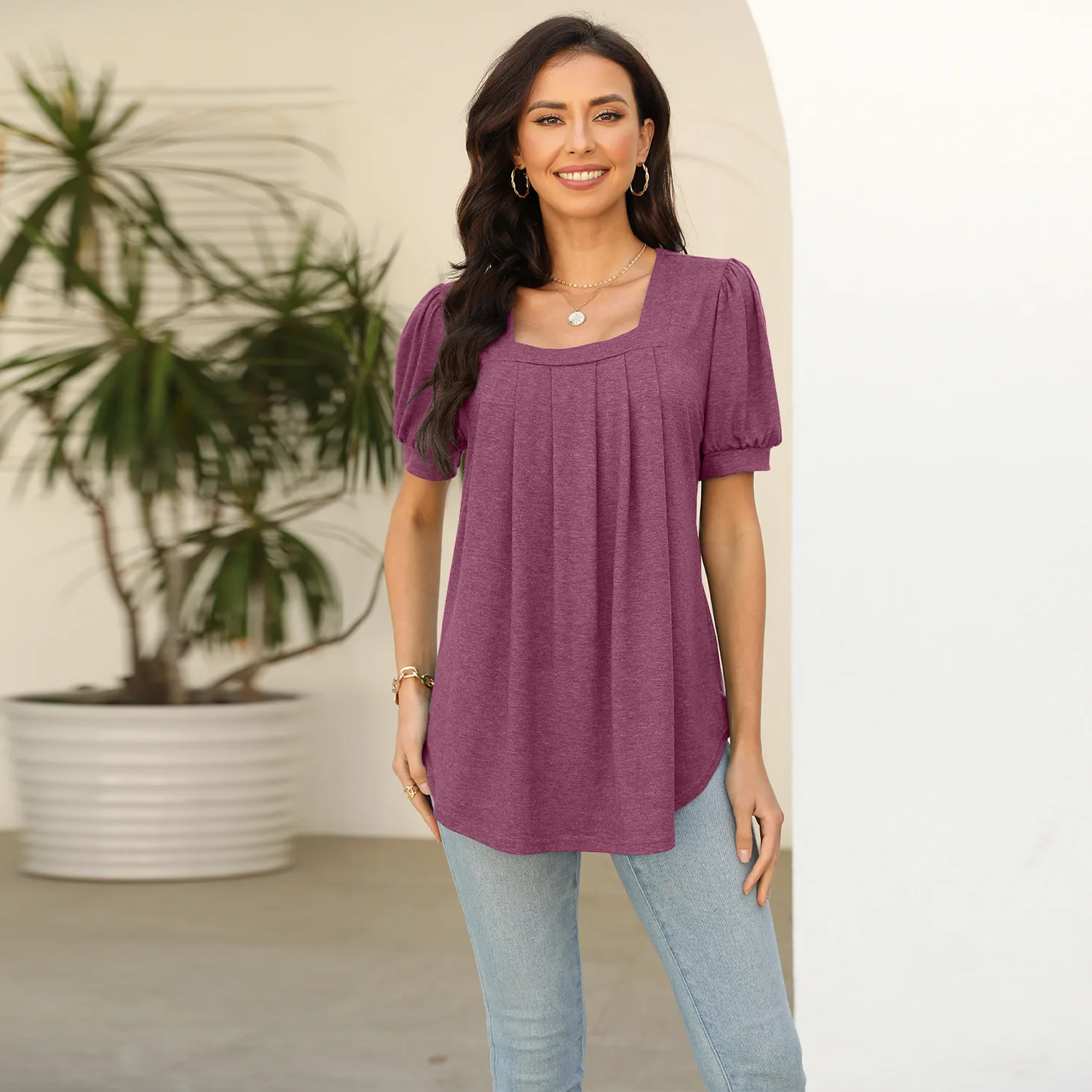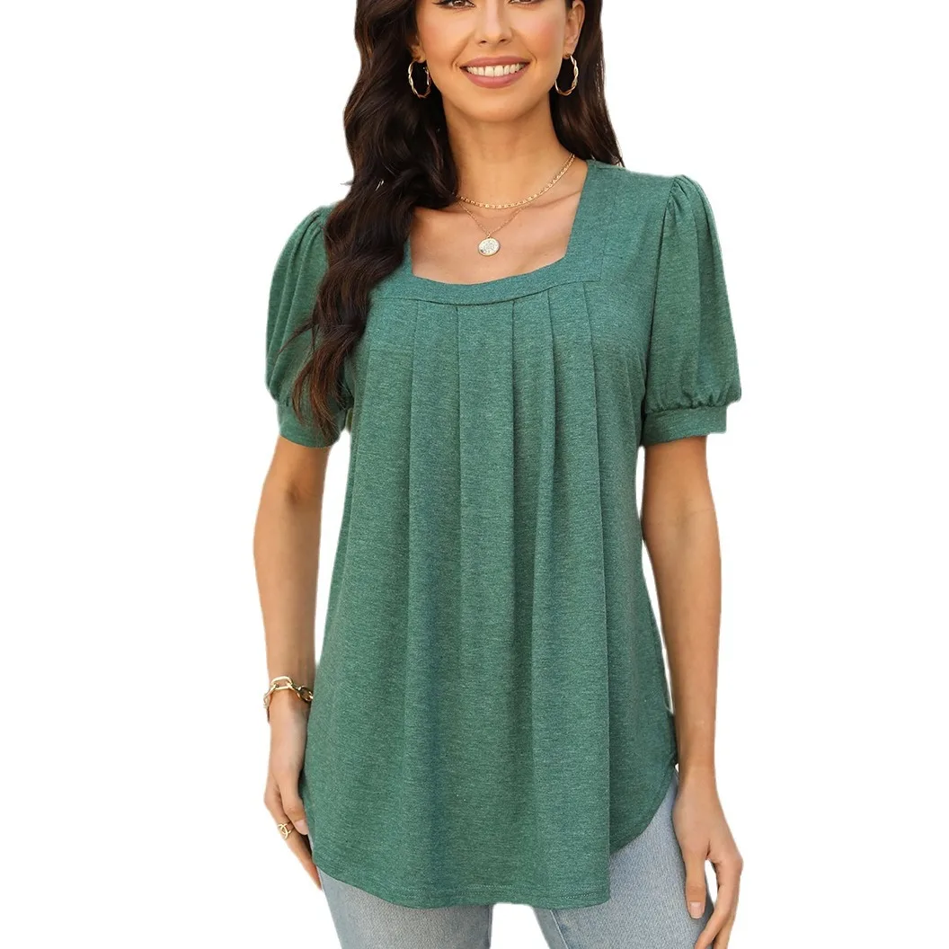 J1 Cross-Border Export 2024 Spring Summer Collection New Pleated Loose Casual Short-Sleeved T-Shirt N1-343 Knitted Anti-Pilling
