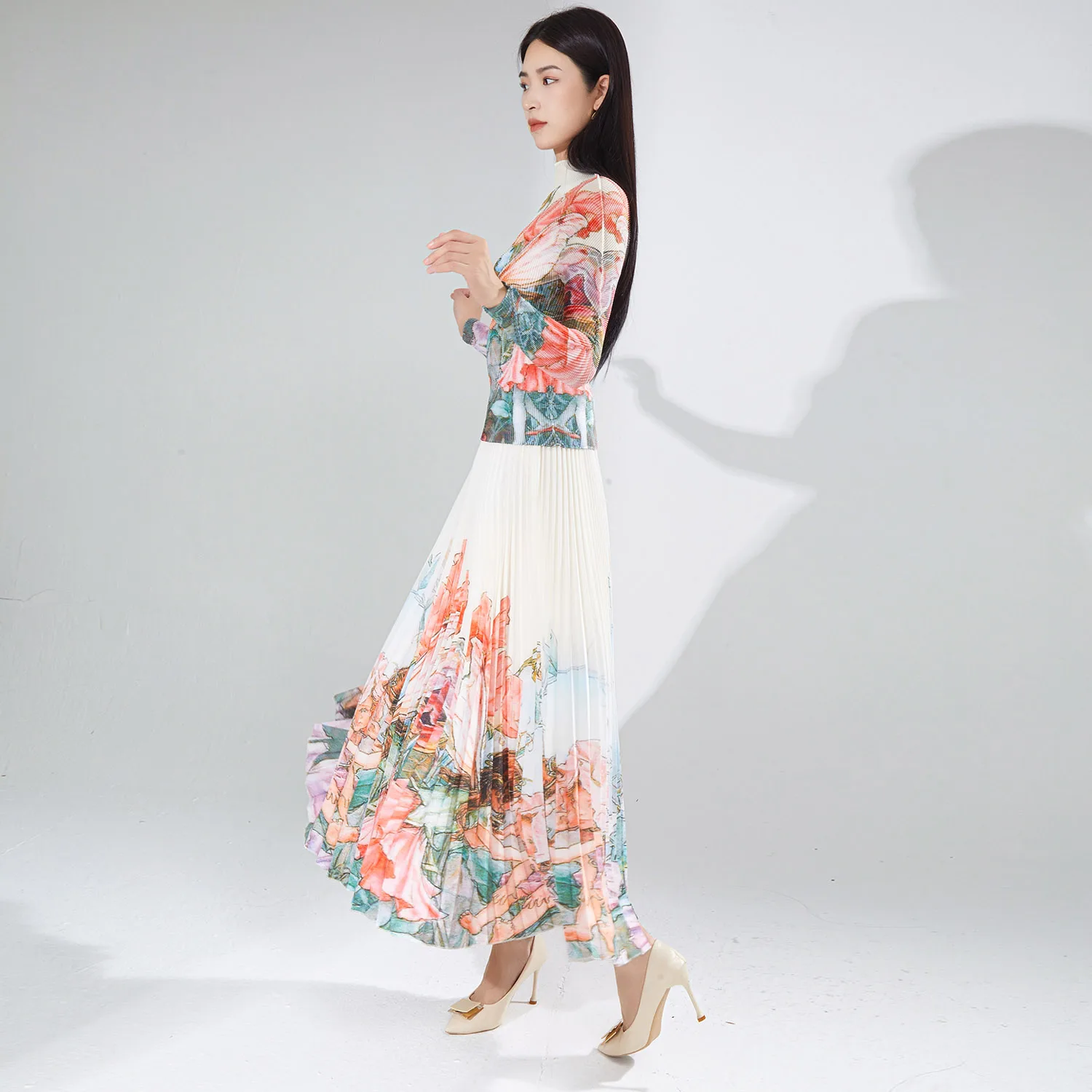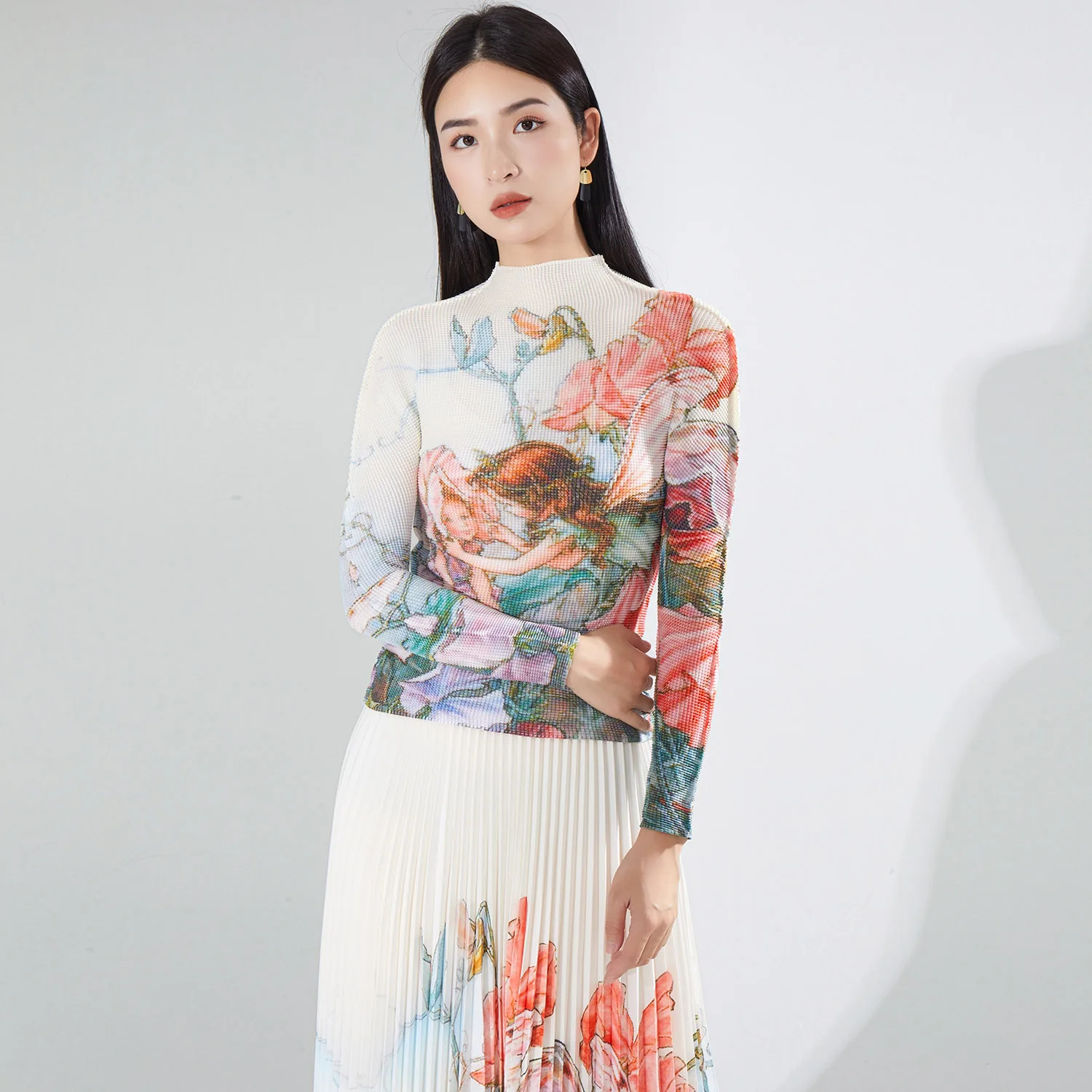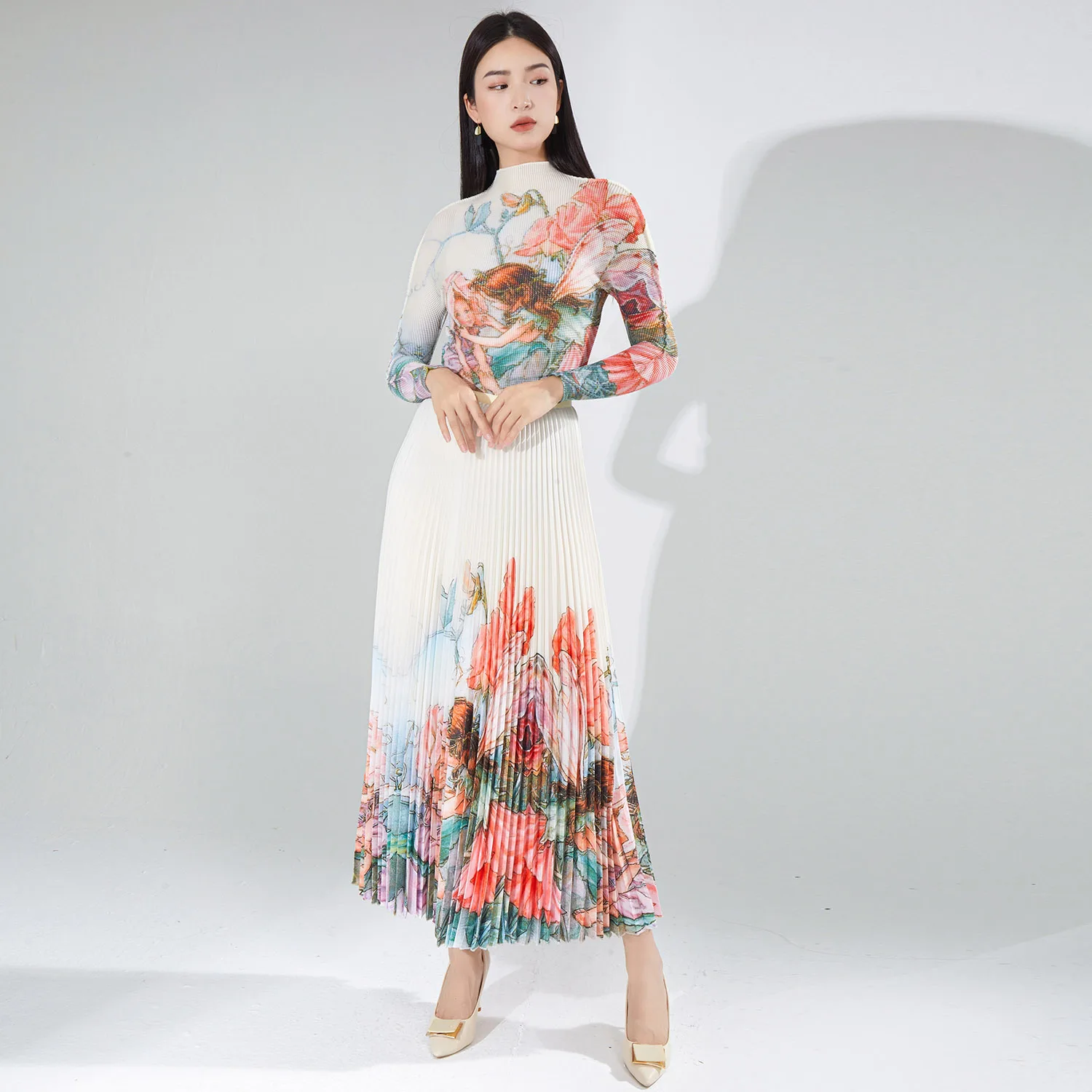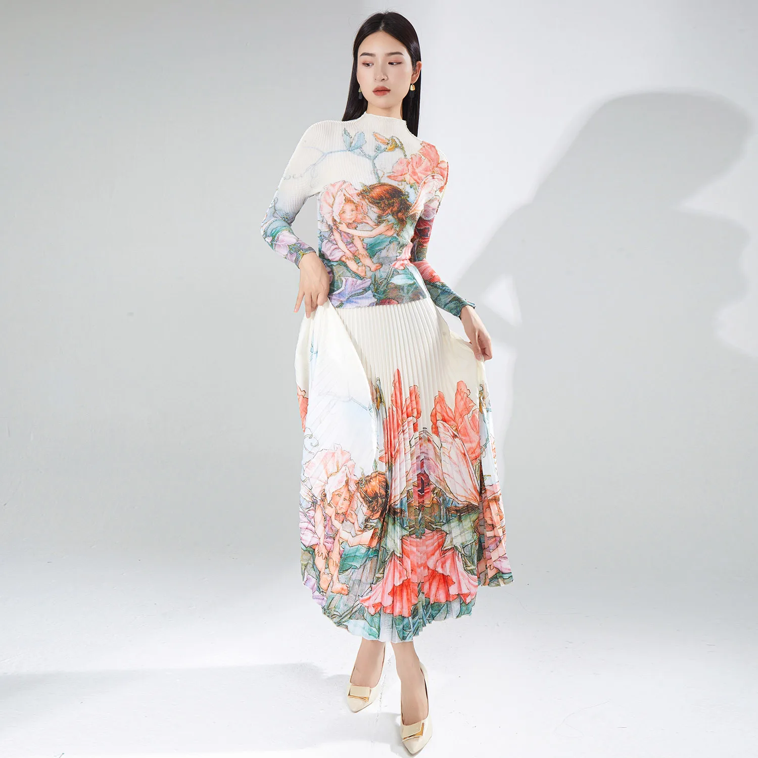 Unique and Stylish Designer Set - Fashionable and Youthful Print Top With High Waist Pleated Skirt Miyake Two-Piece Set